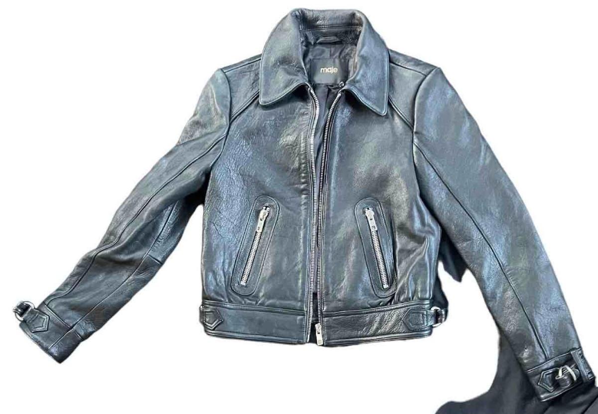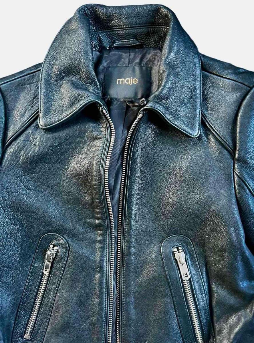 Stay effortlessly stylish with this designer Maje leather jacket, featuring a classic biker style, premium leather, and a sleek, edgy look.<br /> <strong>Size: </strong>XS<br /> <strong>Condition: </strong>Excellent.<br /> <br /> <br />