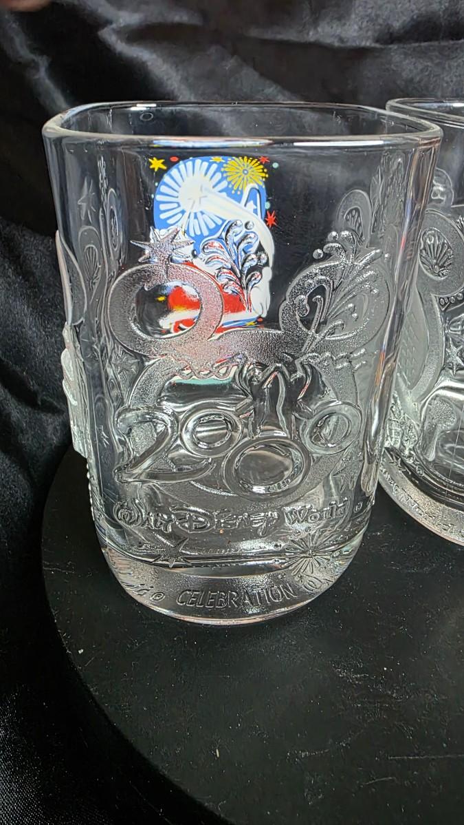 Step back into the magic of the year 2000 with this authentic matched pair of Walt Disney World Millennium Celebration glasses, created to honor one of the most unforgettable milestones in Disney history. These collectible pieces were produced for the dawn of a new century, capturing a once-in-a-lifetime moment when fireworks, parades, and the night sky turned the parks into a shimmering masterpiece.
