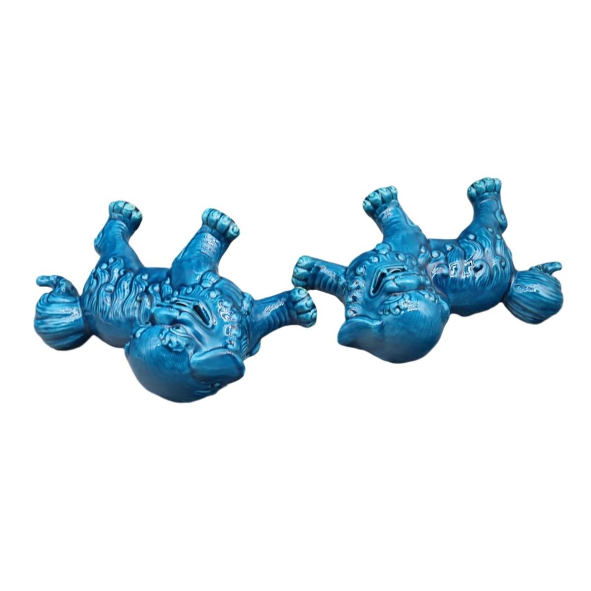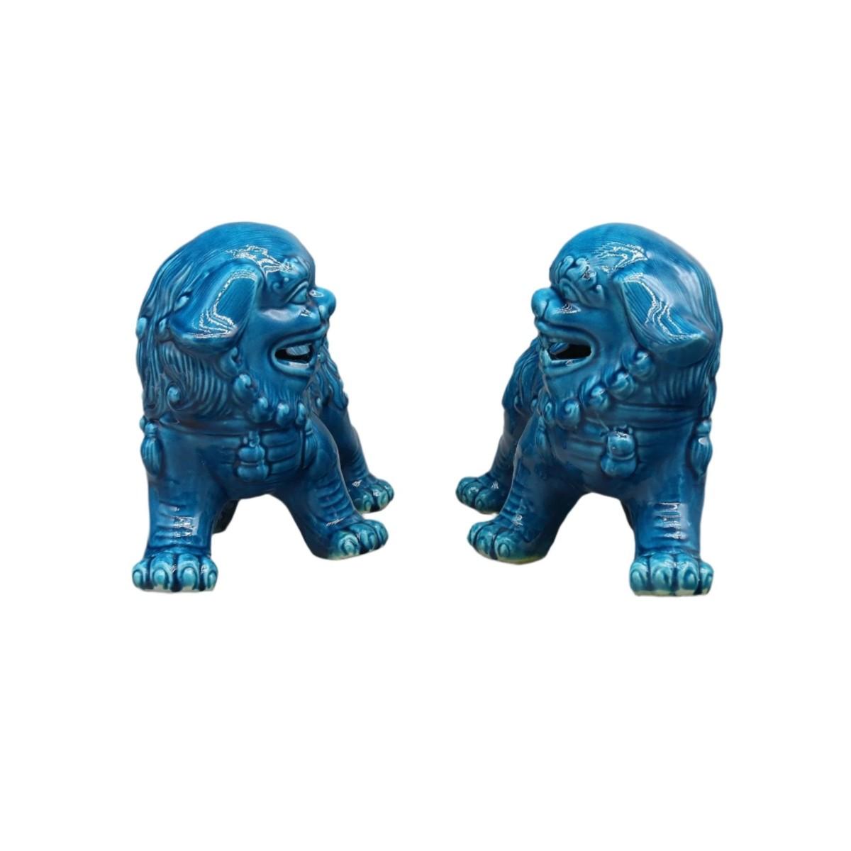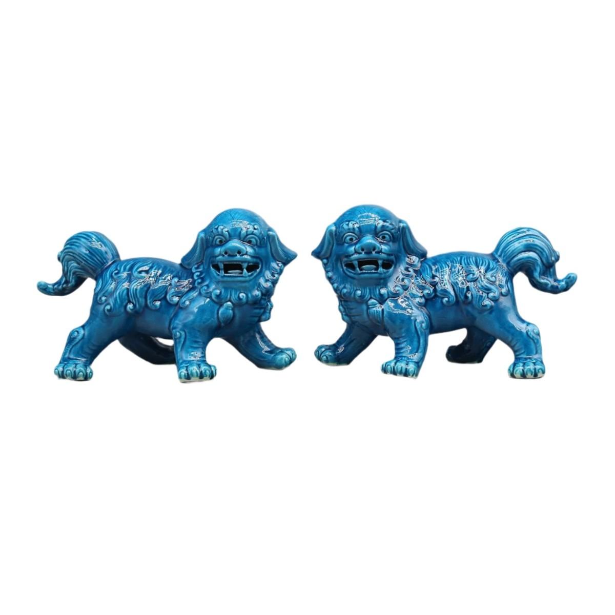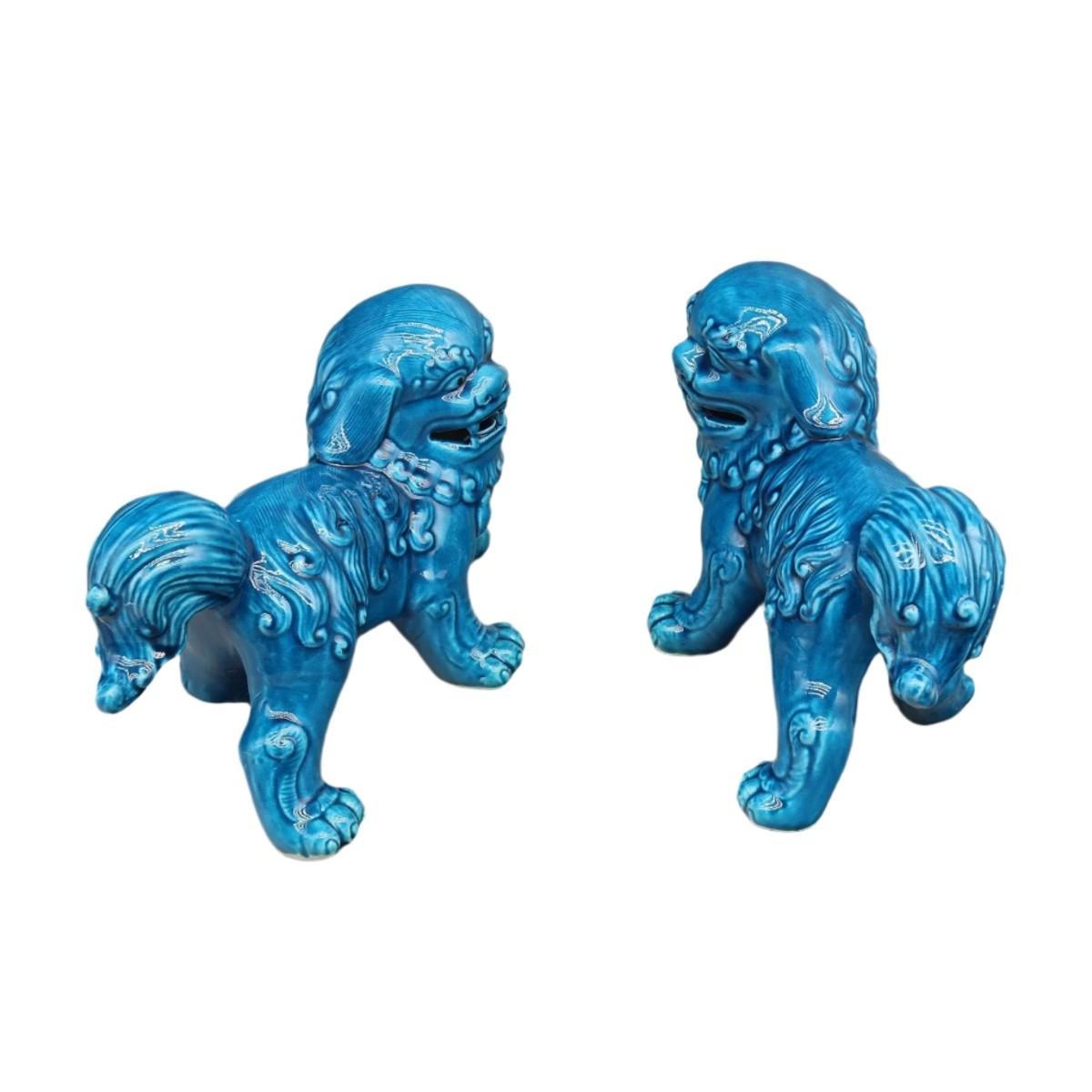 Design Features:A Add some colorful and playful guardians to your home with these handpainted turquoise walking lion statues also known as foo dogs. These quirky guardians will add a unique touch to any room while keeping you and your space safe.
