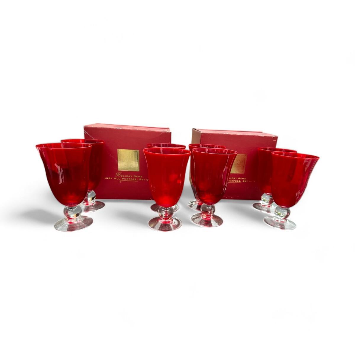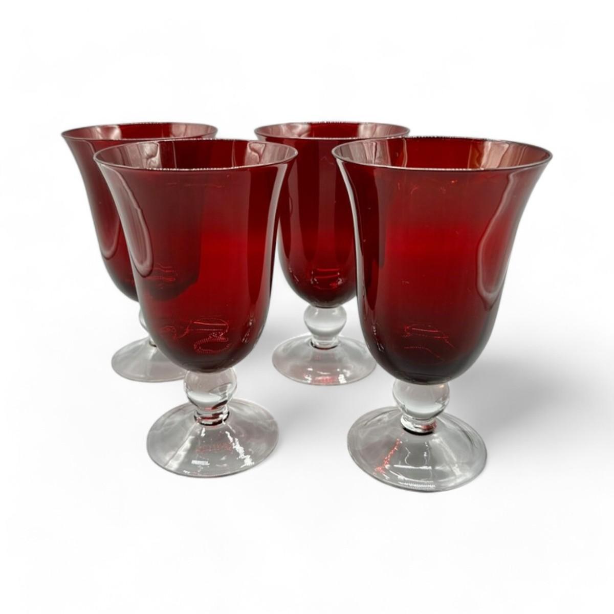 Elegant Set of 4 Ruby Ball Stemmed Wine Goblets by Lenox Holiday Gems