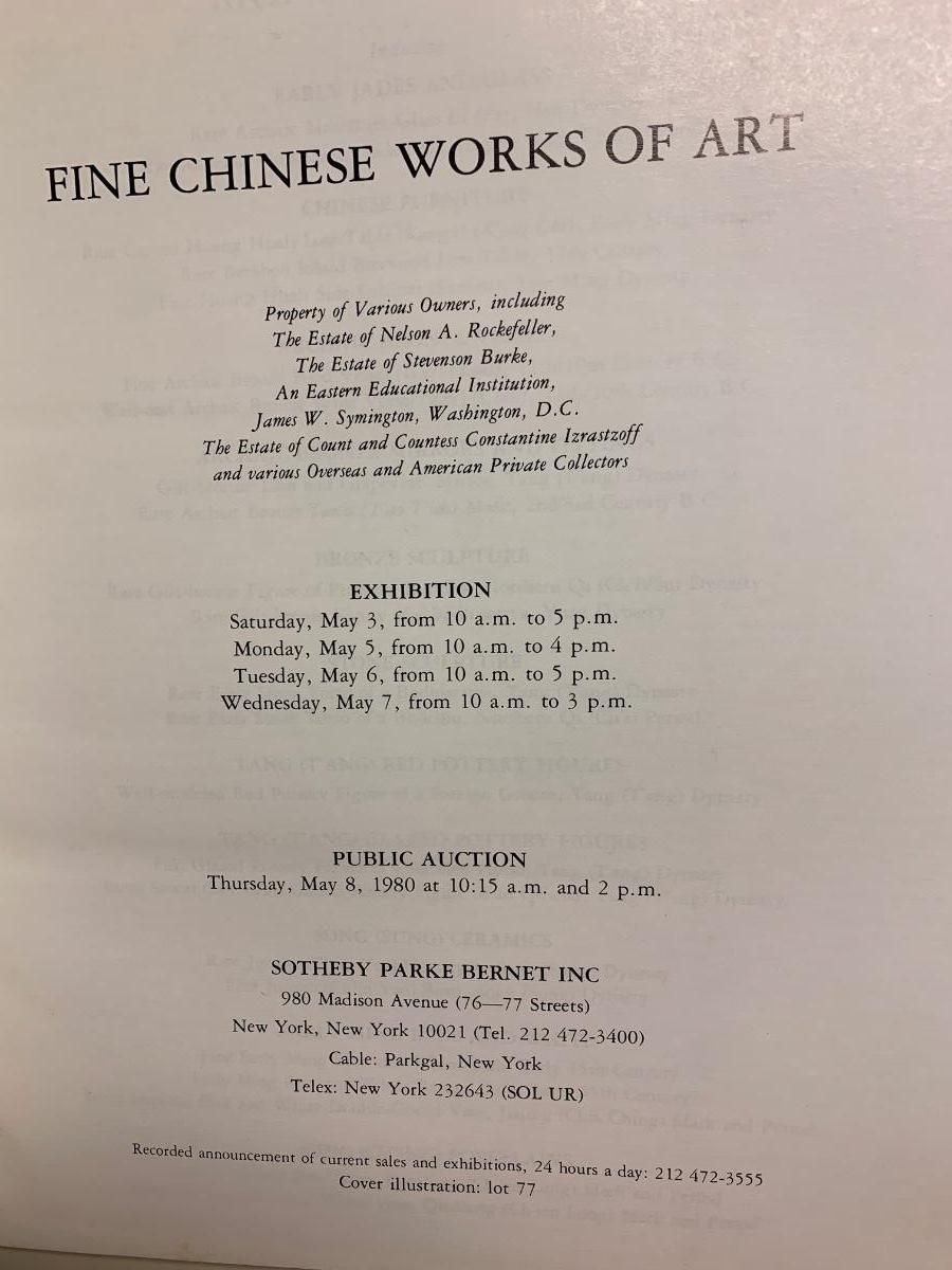Fine Chinese Works Of Art Sotheby’s Auction Catalog May 8, 1980