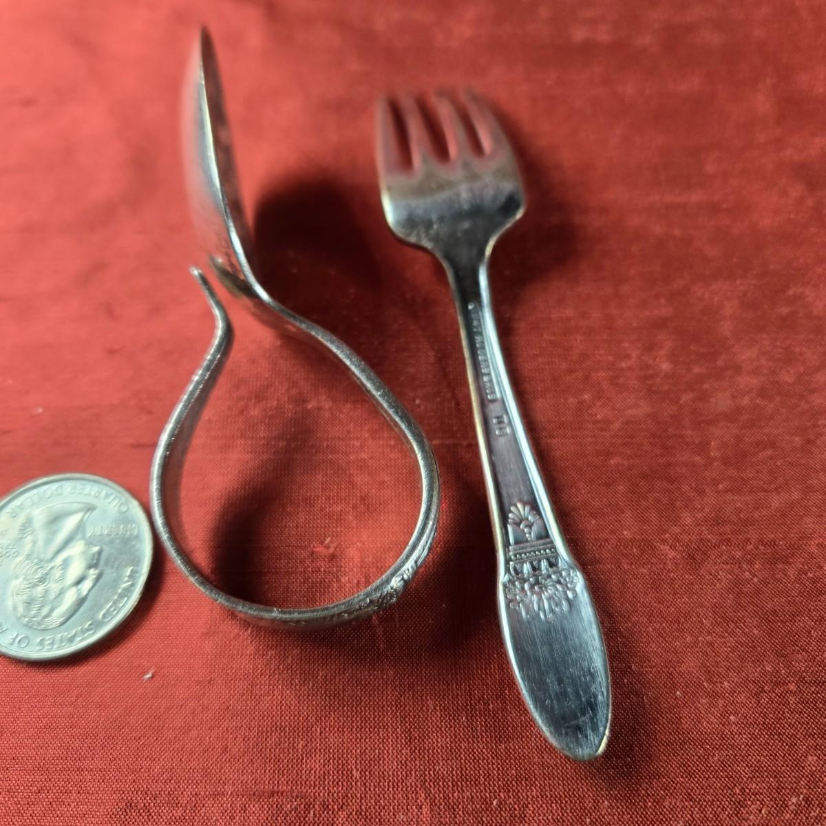 This auction lot is for a "First Love" Baby Spoon & Fork by Rogers Brothers." It is a very nice set of baby utensils. They are a matched se of "First Love" pattern by Rogers Brothers. They are silver plated in used condition and ready to be used again. So sweet and looking for their next pampered baby.