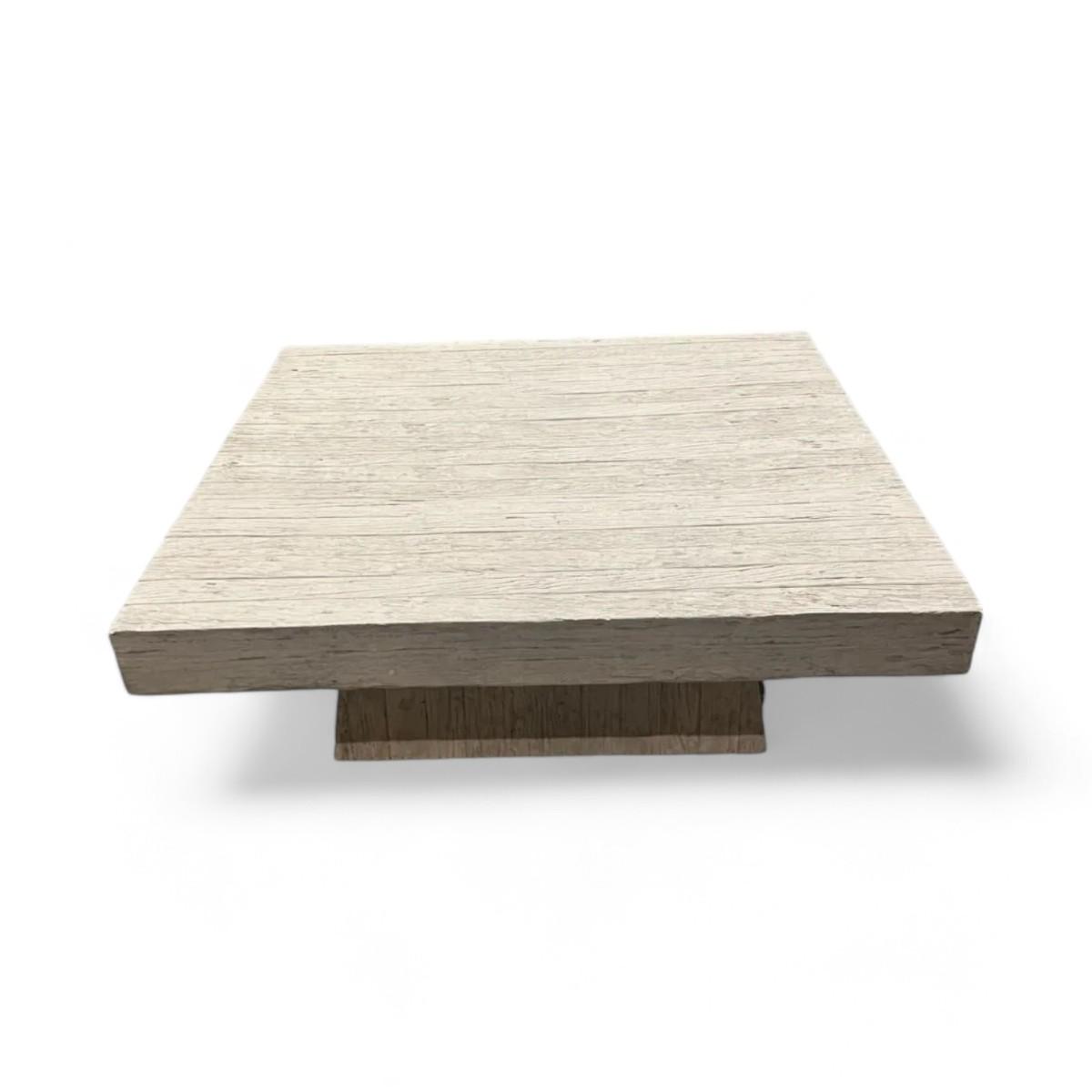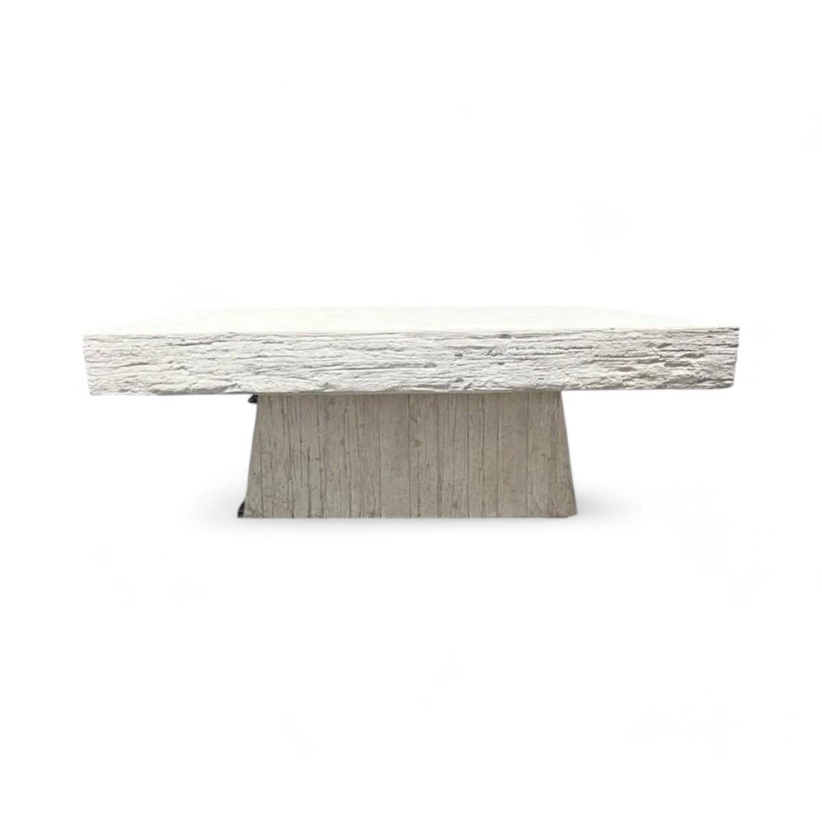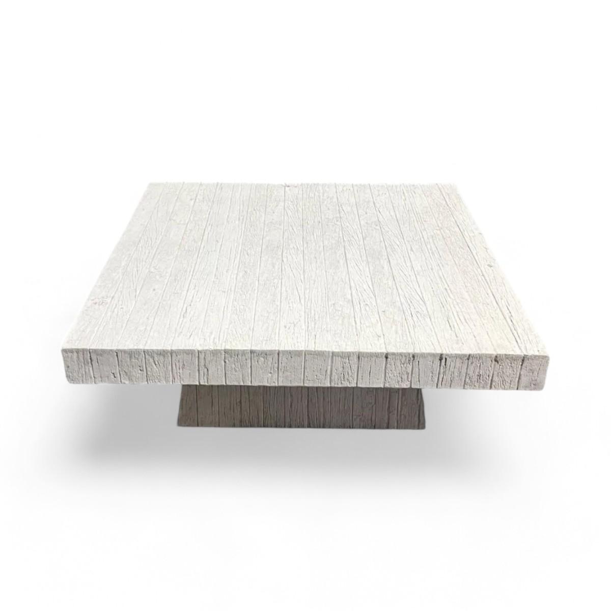 Designed to imitate large-scale planks of old-growth wood, the Haddon Faux Wood Table is created from a mix of long wearing resin and crushed stone. This Haddon coffee table brings architectural impact and low-maintenance style to any outdoor seating arrangement.