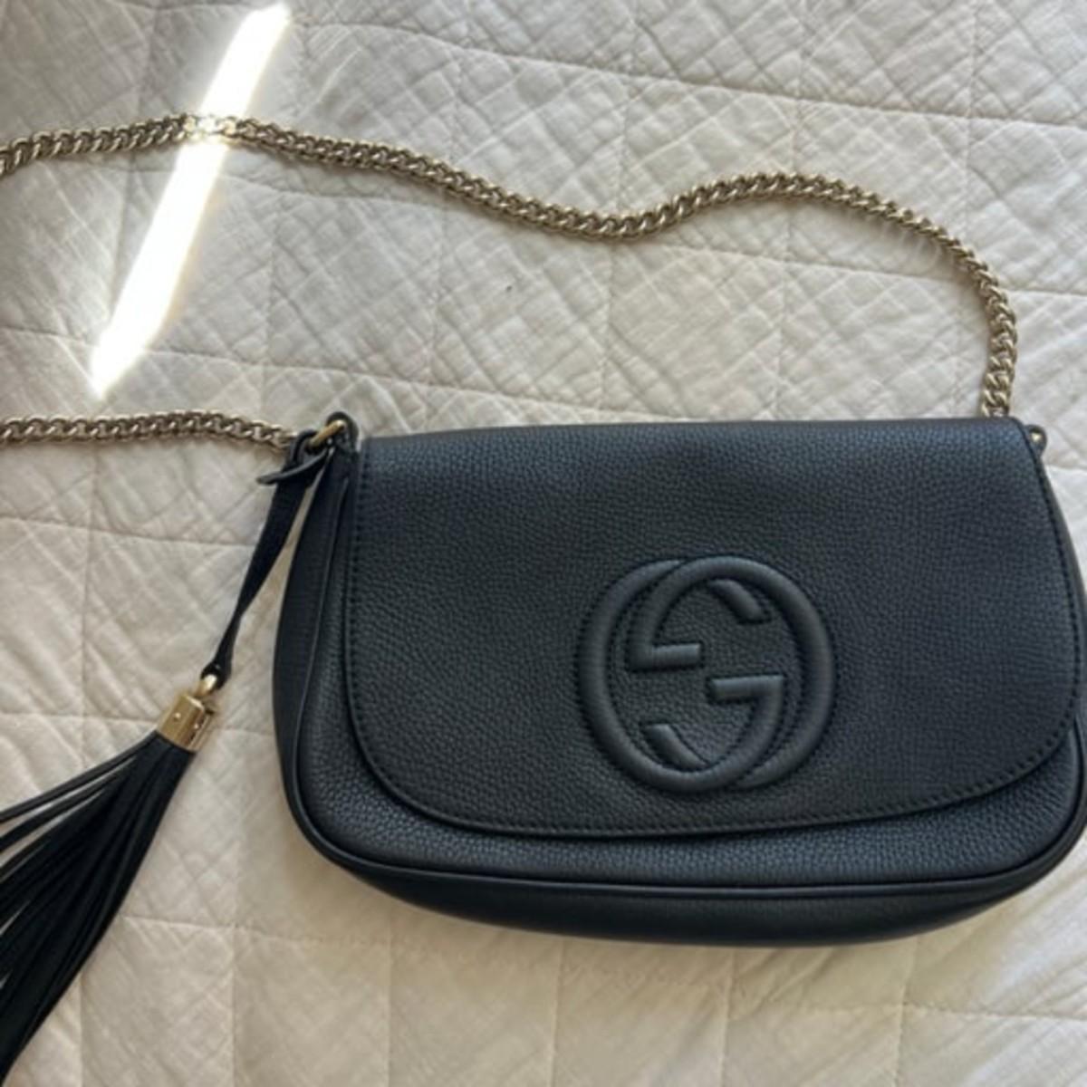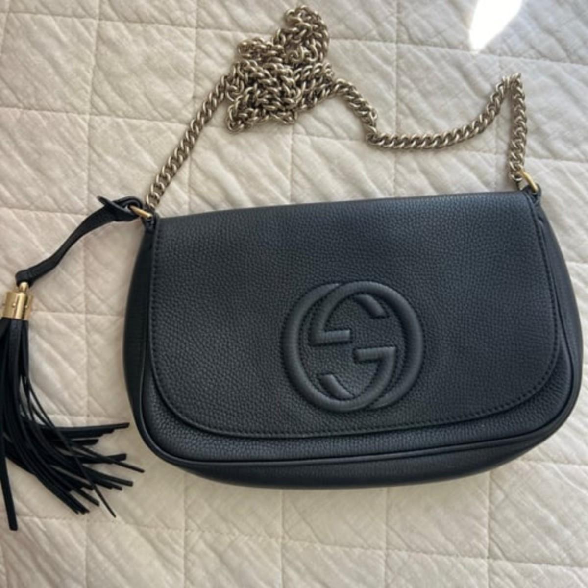 GUCCI BLACK GRAINED LEATHER SOHO CHAIN FLAP CROSSBODY