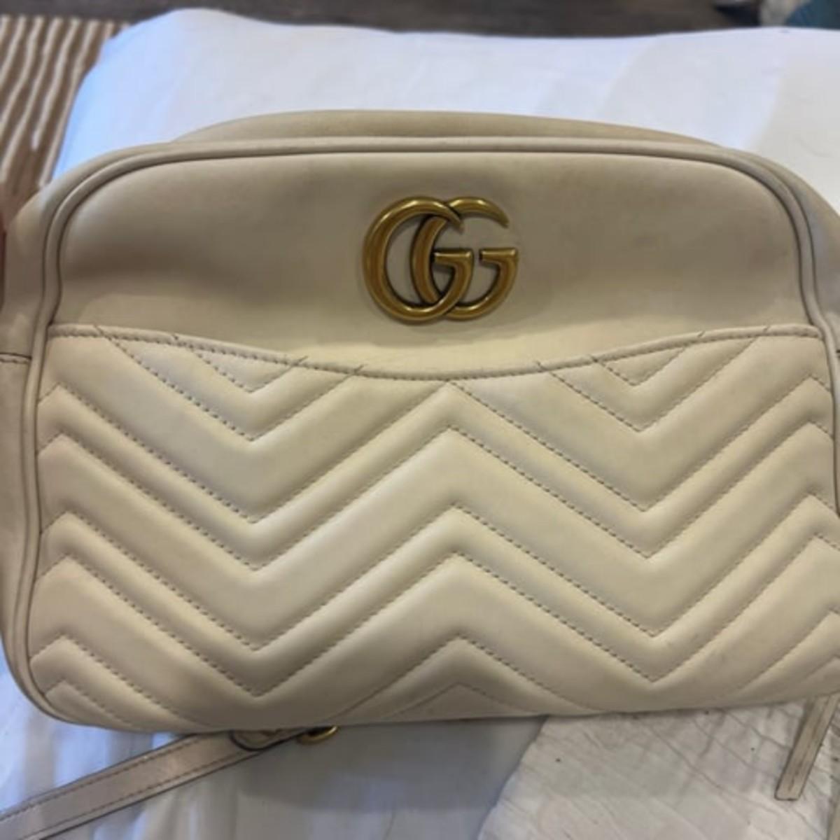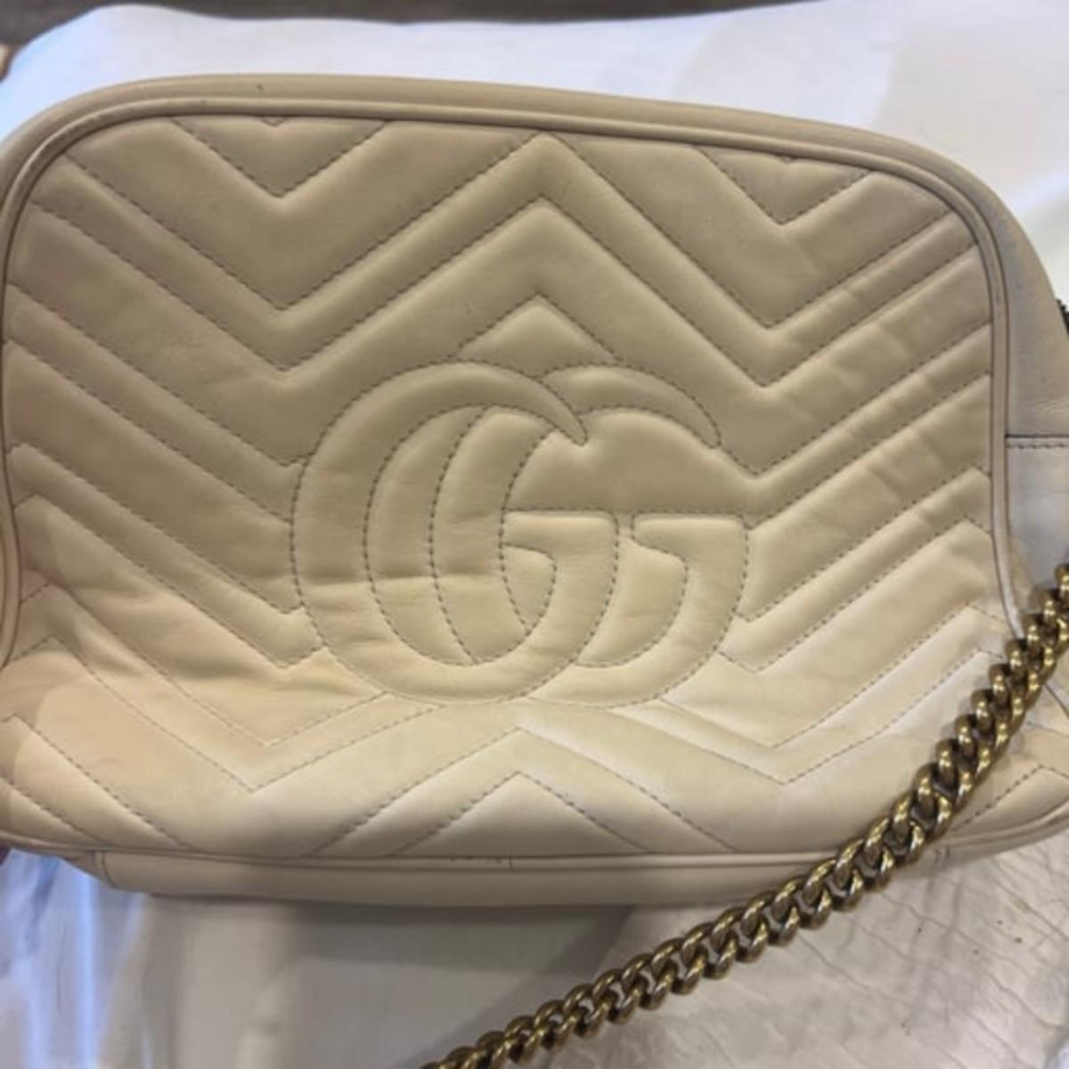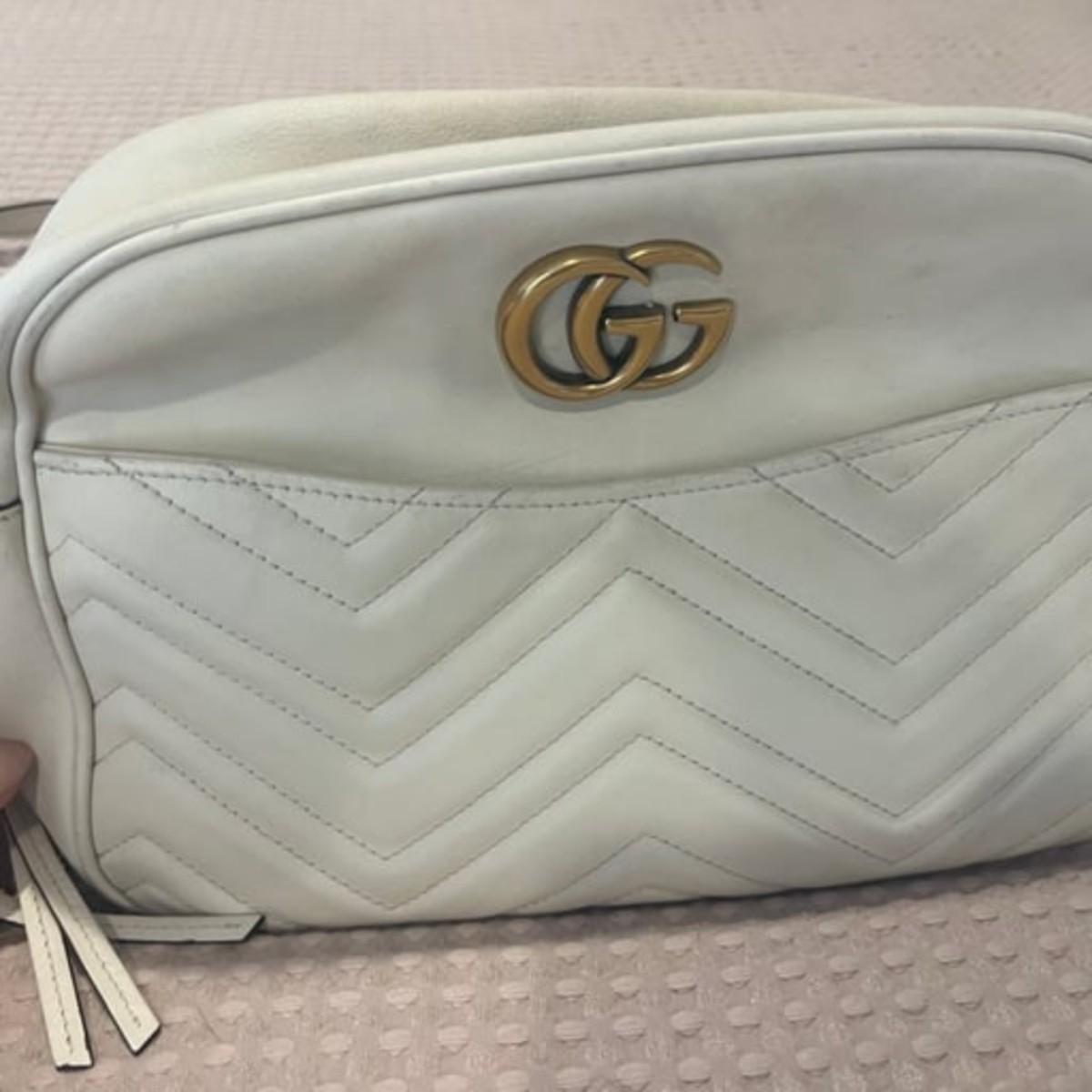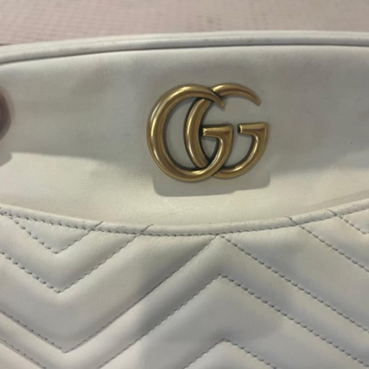 GUCCI Calfskin Matelasse Medium GG Marmont Chain Shoulder Bag Mystic WHITE Length: 10.5 in Height: 7.5 in Width: 3.25 in Drop: 21.5 in