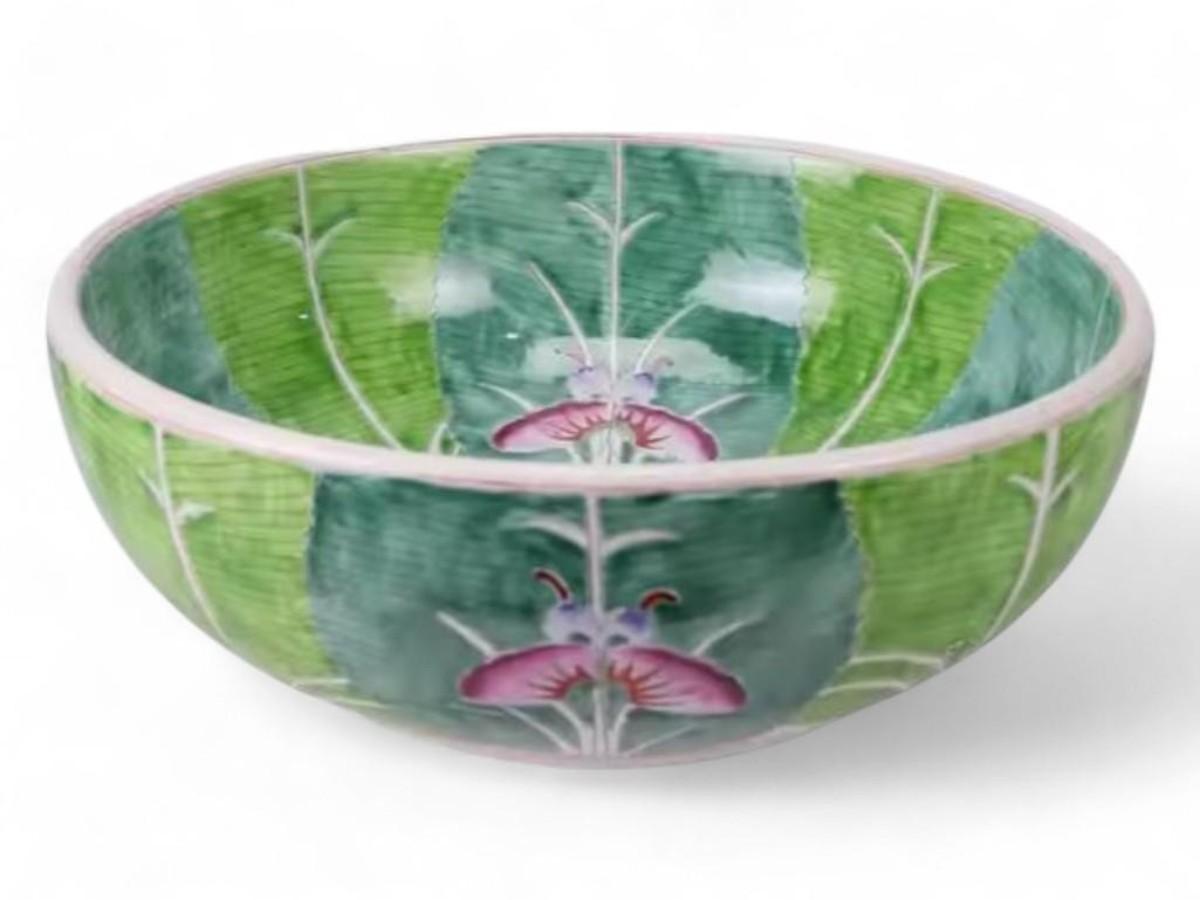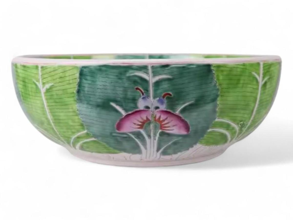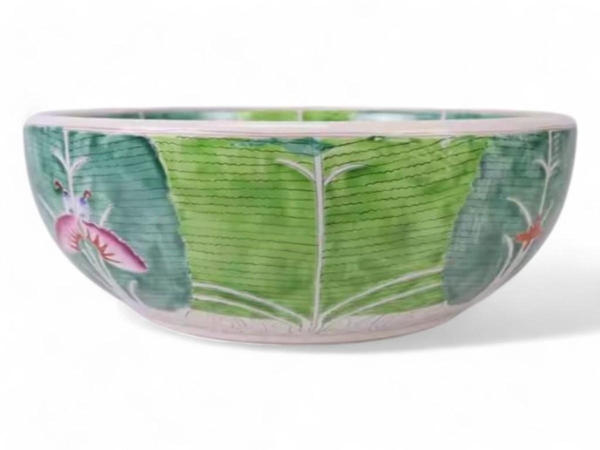 Hand-Painted Chinese Bok Choy Cabbage Leaf Ceramic Sink Bowl, Wash Basin, Jingdezhen Porcelain