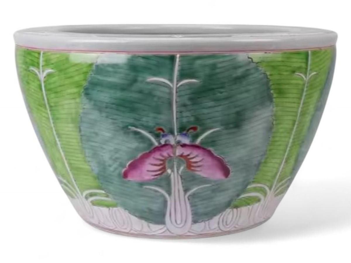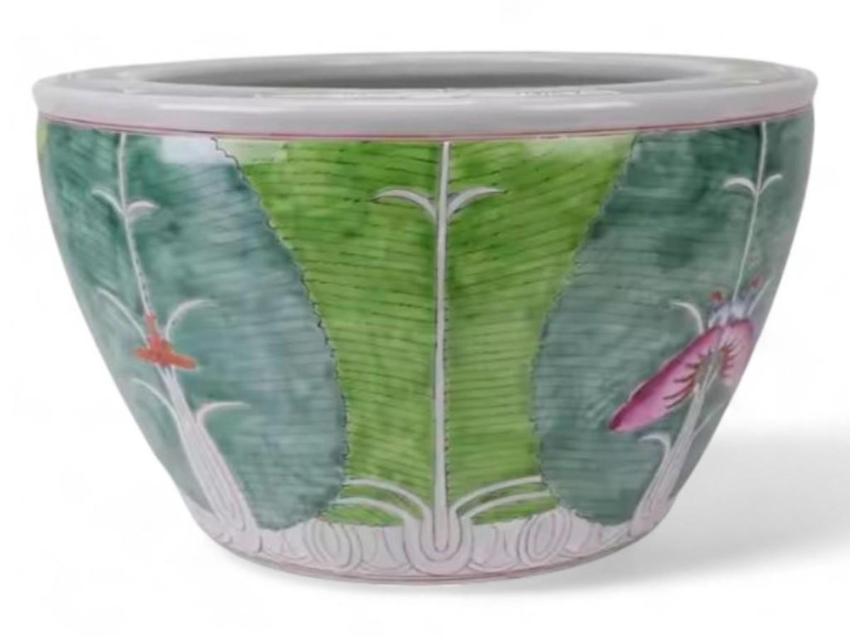 Hand-Painted Chinese Bok Choy Cabbage Leaf Ceramic Fish Bowl Planter, Jingdezhen Porcelain