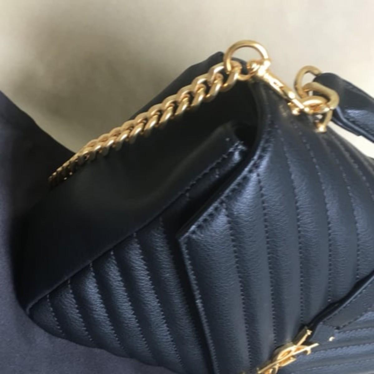 INTERIOR POCKET/COMPARTMENT: no visible marks HARDWARE: slight scratches SHOULDER STRAP: no visible marks The interior, equipped with a zip pocket, is fabric-lined and offers enough space to store your cards, keys and currency. High on appeal and effortlessly stylish, this flap bag deserves to be in your arms.