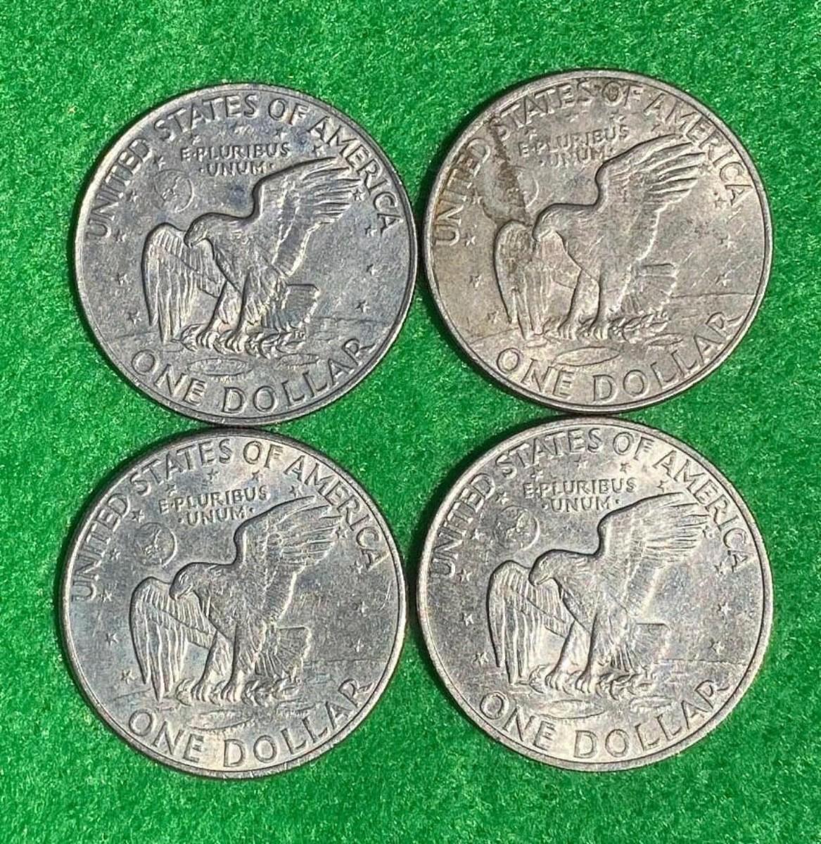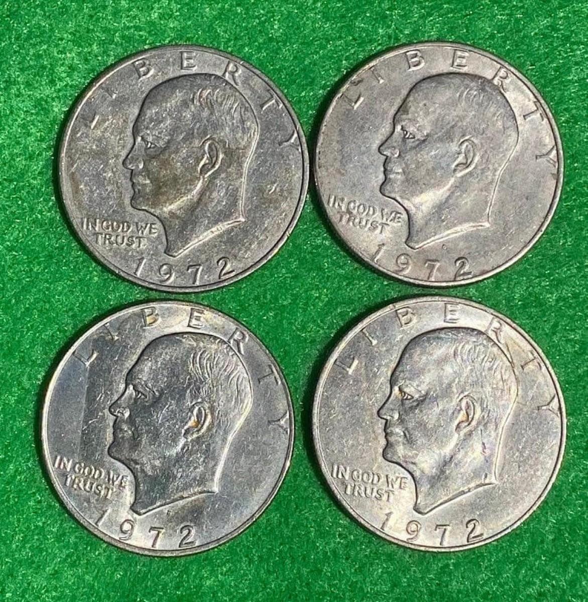 1972 Ike Dollar Coins 4 X Retro, Eisenhower Coinage Circulated Money, Eagle Moon, Lunar, Numismatica, Jewelry Supply, NASA, Space, Apollo 11