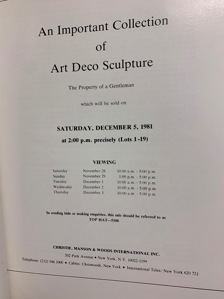 Important Art Deco Sculptures Christie’s Auction Catalog Dec. 5, 1981 Color Illustrated