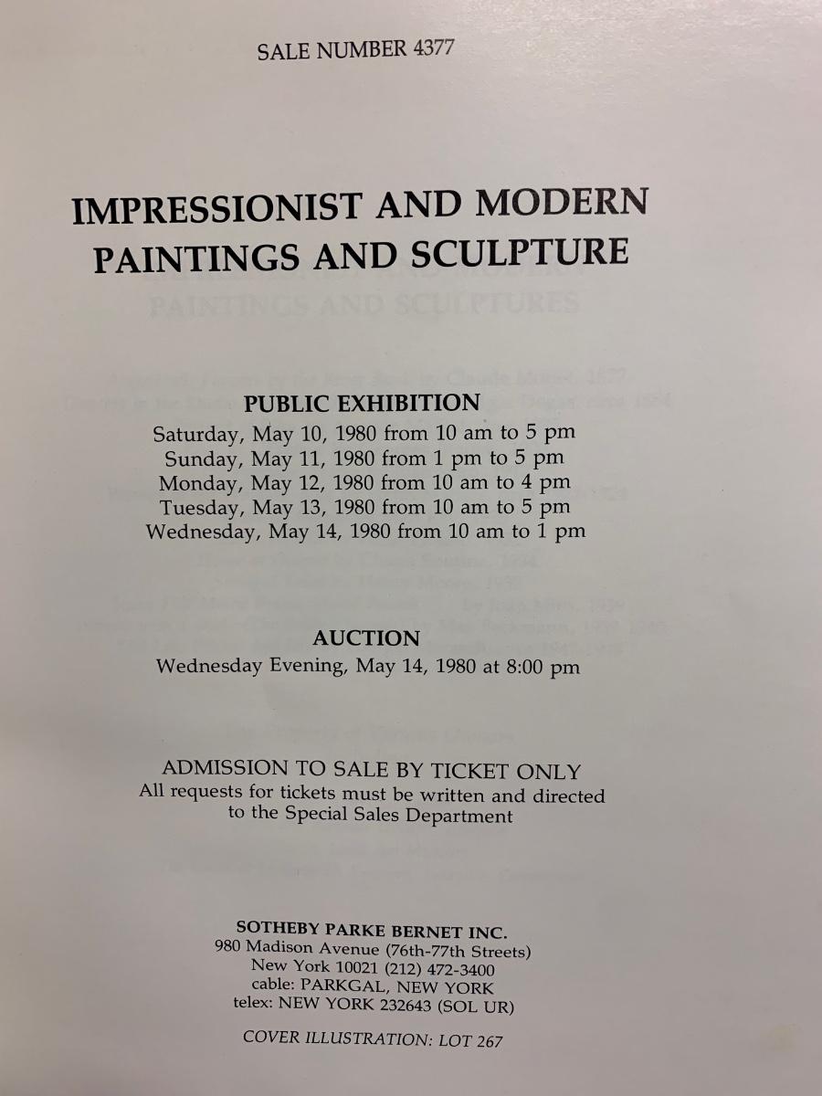 Impressionist & Modern Paintings & Sculptures Sotheby’s Auction Catalog May 14, 1980 Color Illustrated