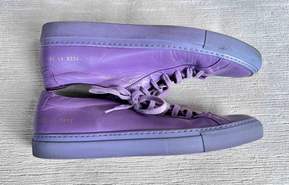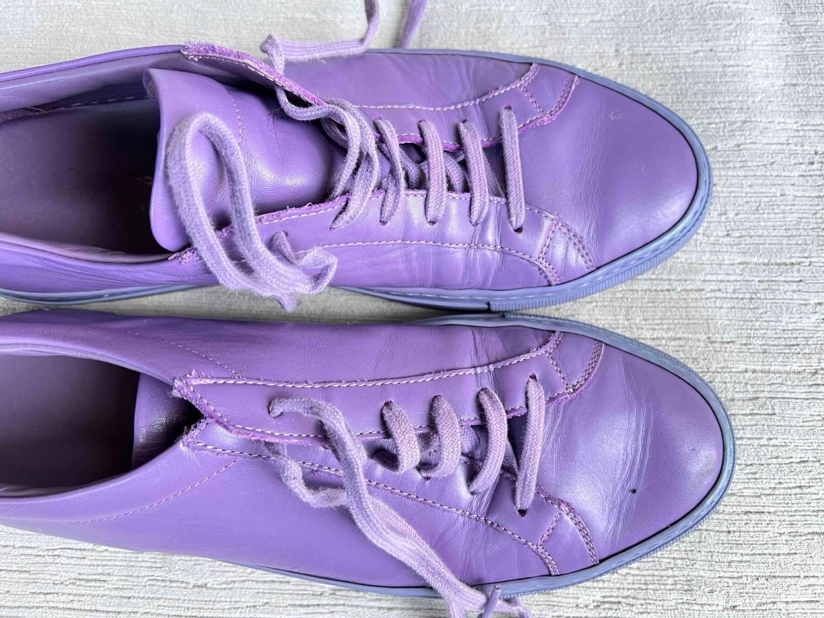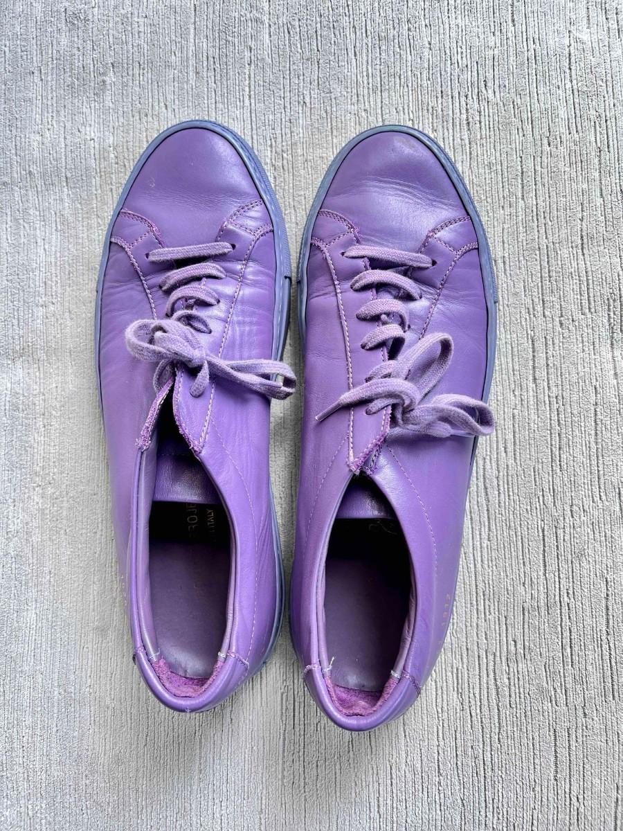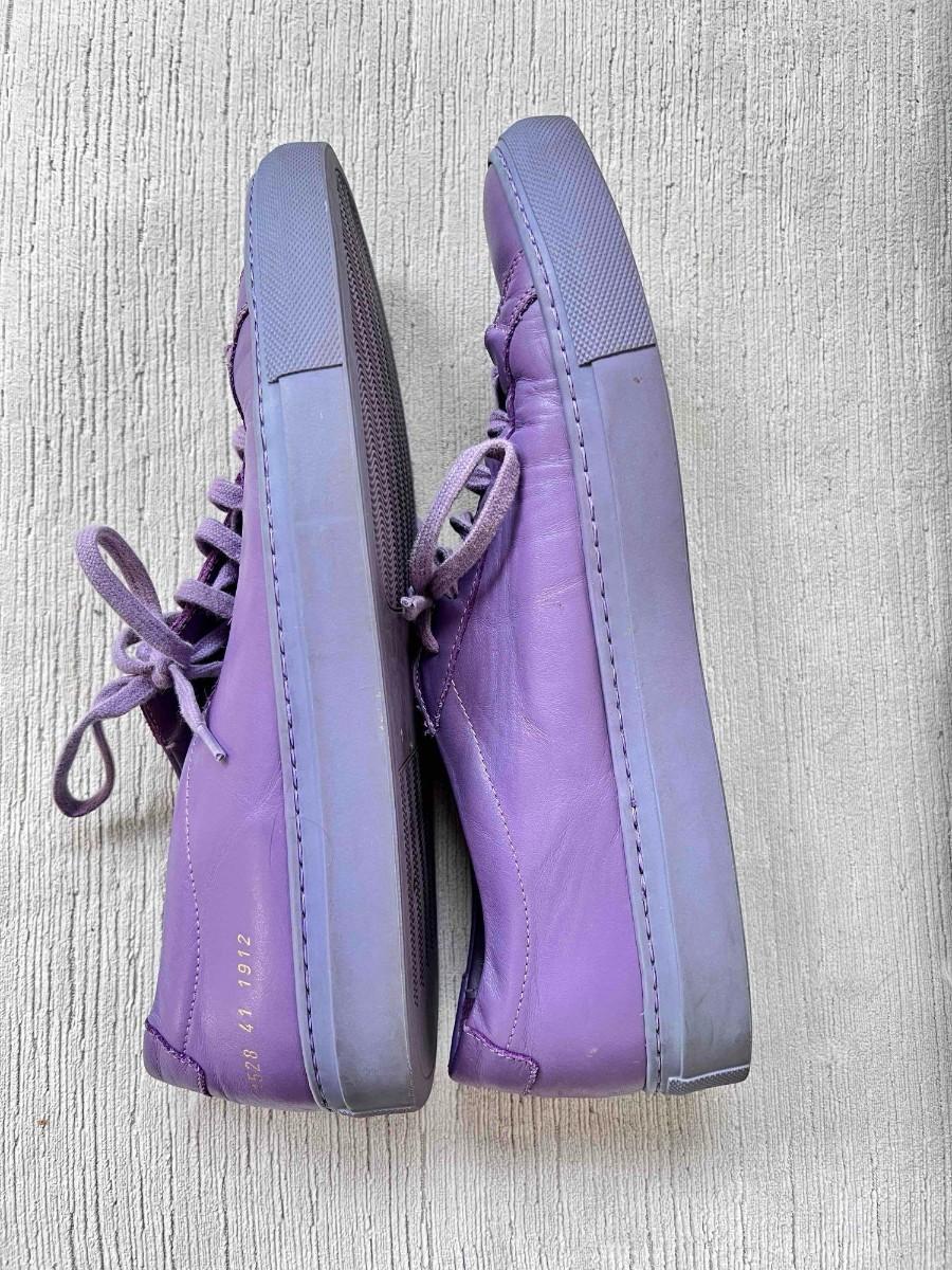 <p>Experience elegance with Italian Common Project men&#39;s sneakers in light blue leather, offering timeless design, premium quality, and superior comfort.<br /> <strong>Size: </strong>11.5&#34;L x 4.25&#34;W at widest point<br /> <strong>Condition: </strong>Very Good</p>