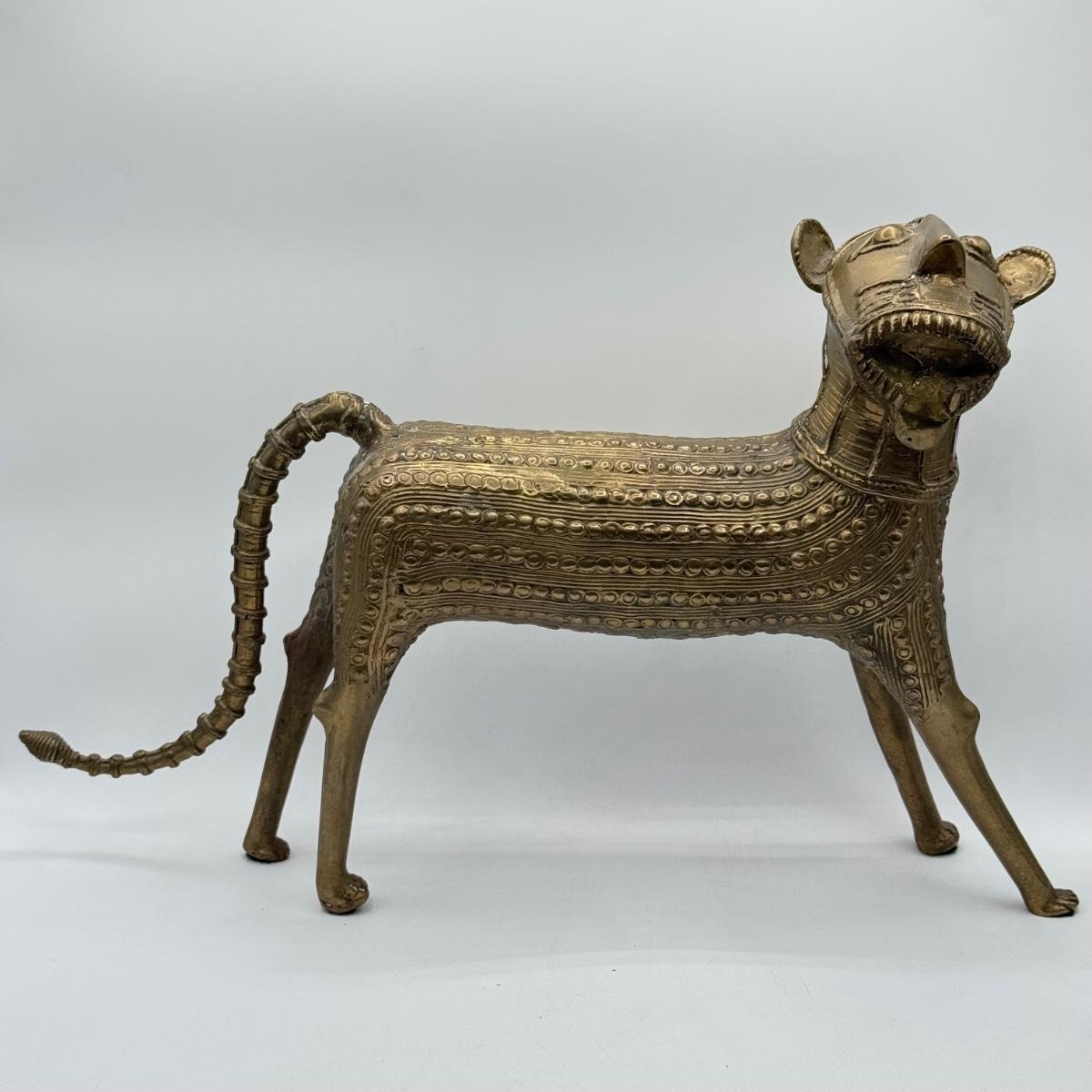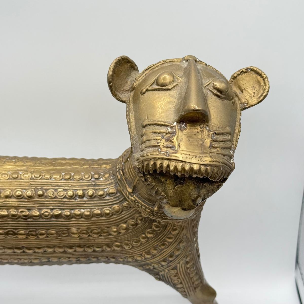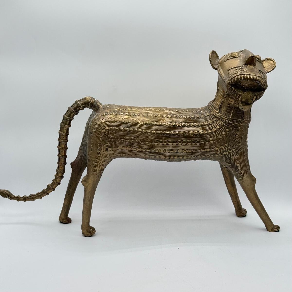 Vintage Tribal India Dhokra Brass Leopard/Jacquer statue, Brass, Made in India, Hand Crafted