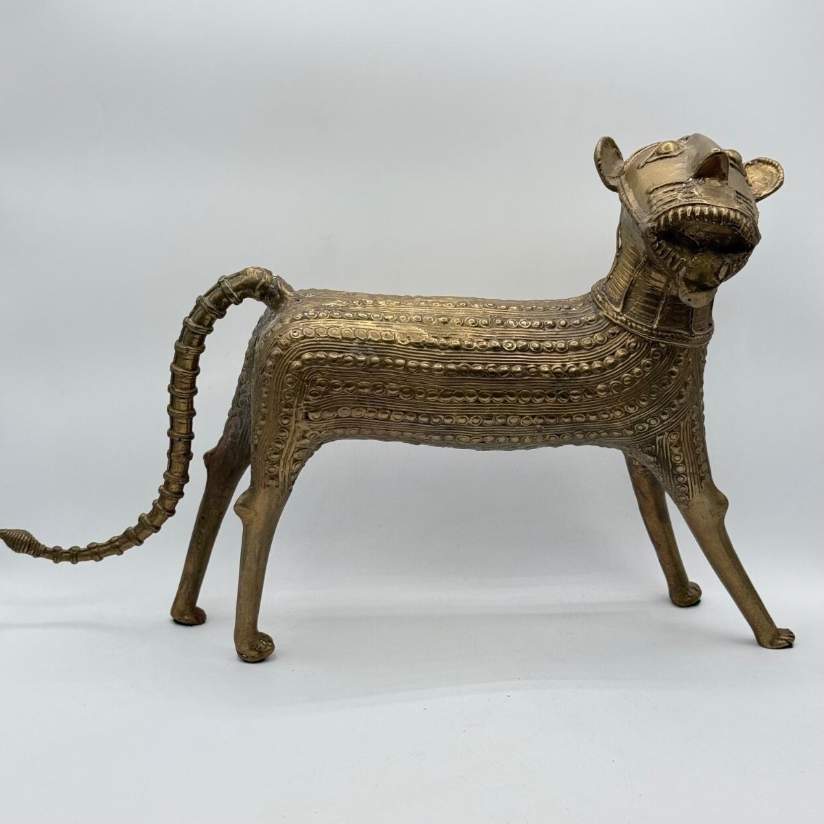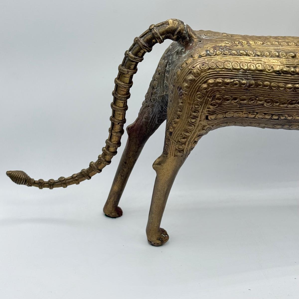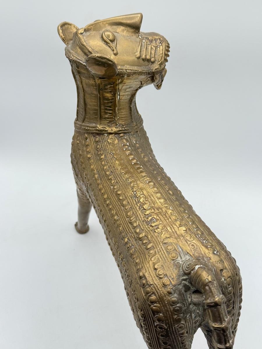 Vintage Tribal India Dhokra Brass Leopard/Jacquer statue, Brass, Made in India, Hand Crafted