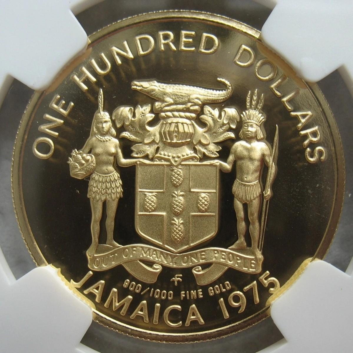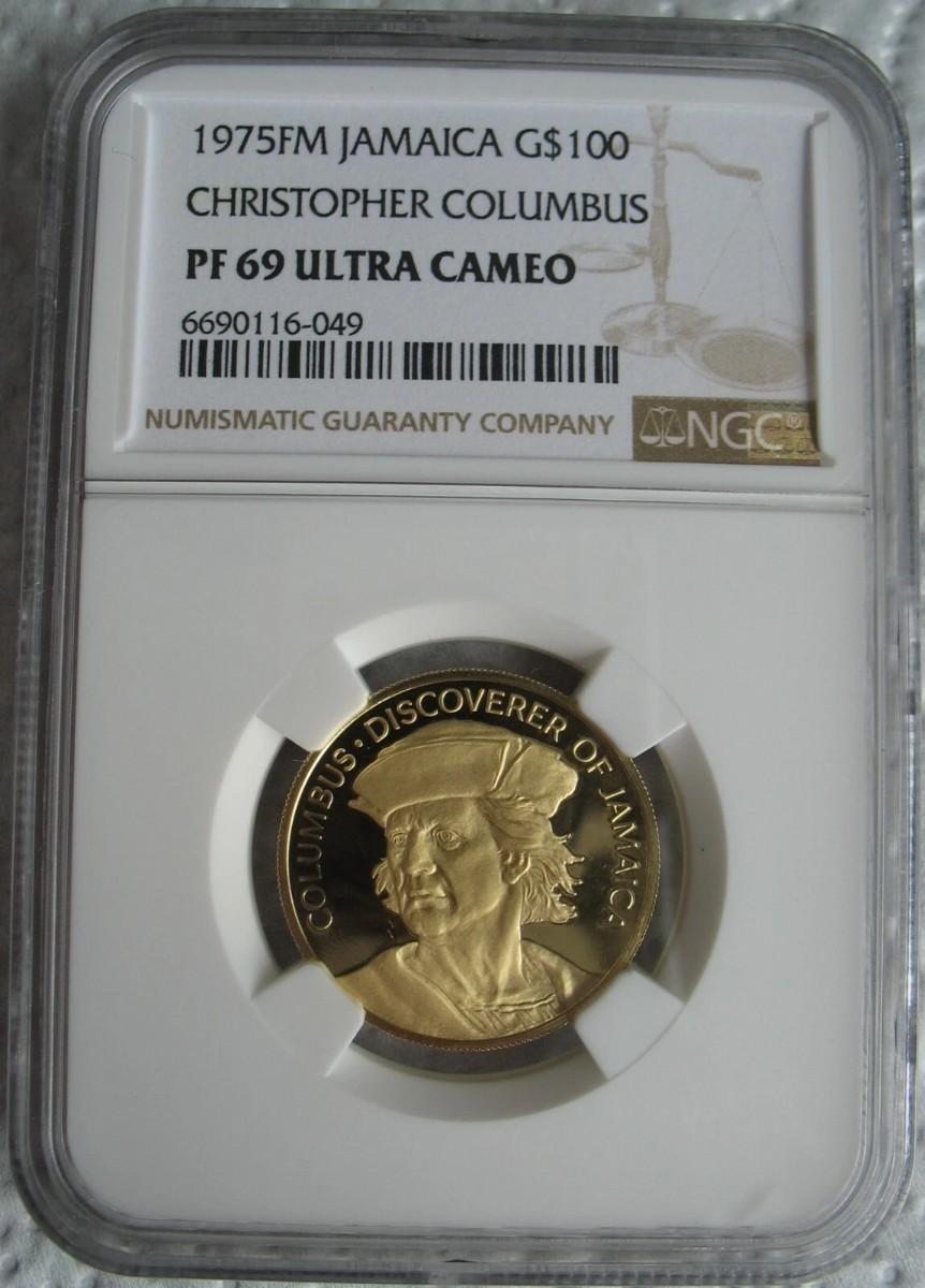 Jamaica 1975-FM Gold 100 Dollars NGC PF-69 Ult. Cameo Christopher Columbus
