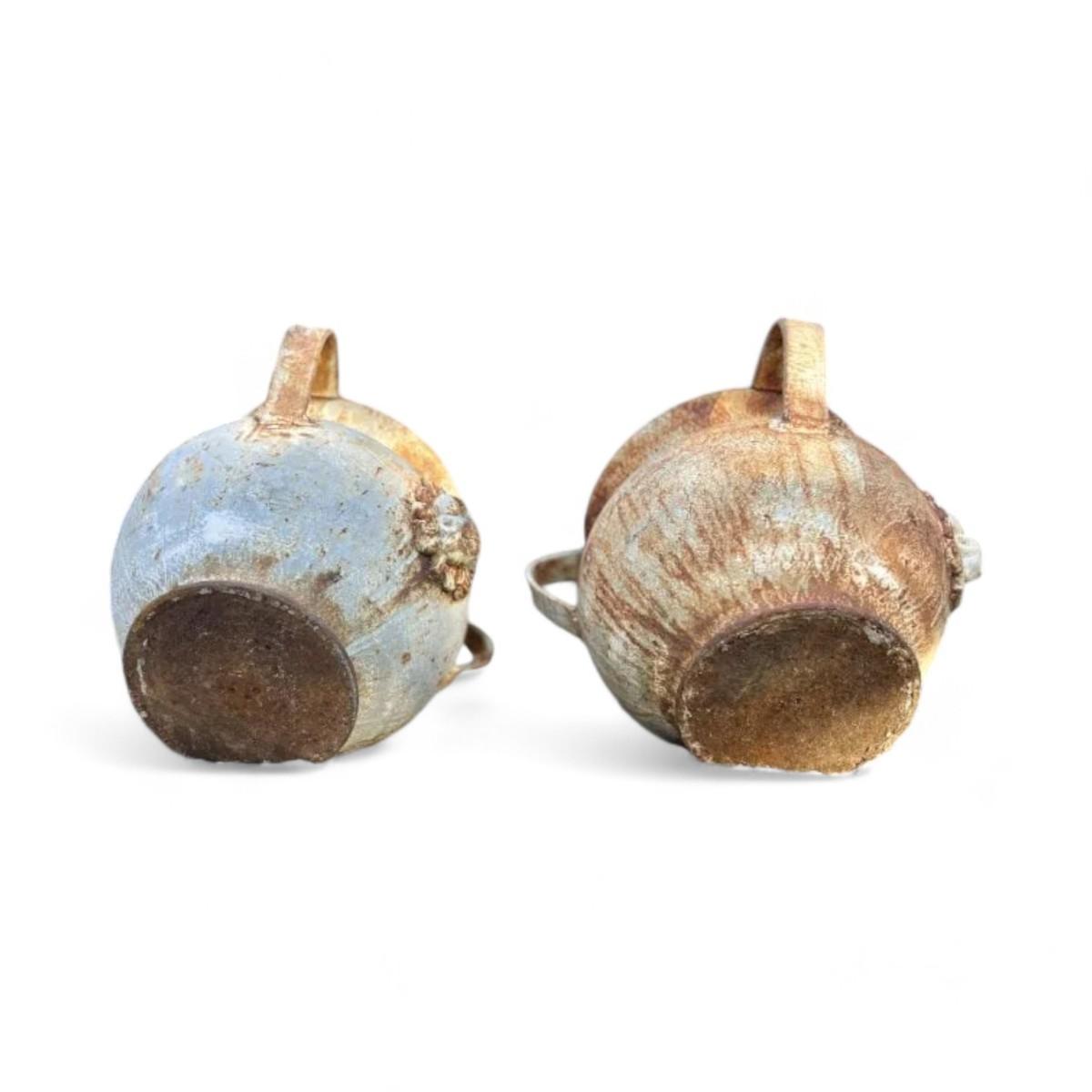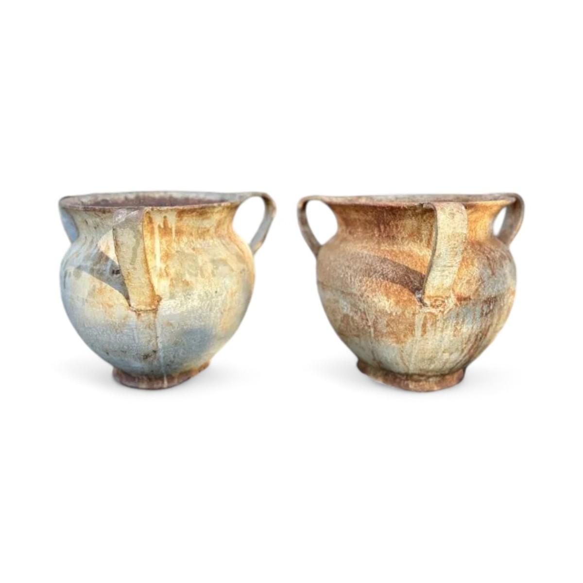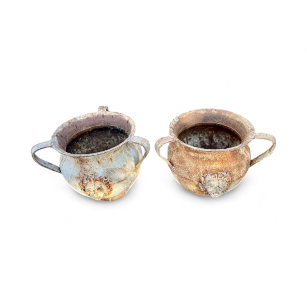 Item Type: UrnsDesign Features: These impressive Italian urns feature striking lion faces and three sturdy handles, exuding a sense of grandeur and classical beauty. The intricate details and vintage design make them perfect statement pieces for any garden or outdoor space.Condition: Good (refer to condition index key) Rust consistent with outdoor use.