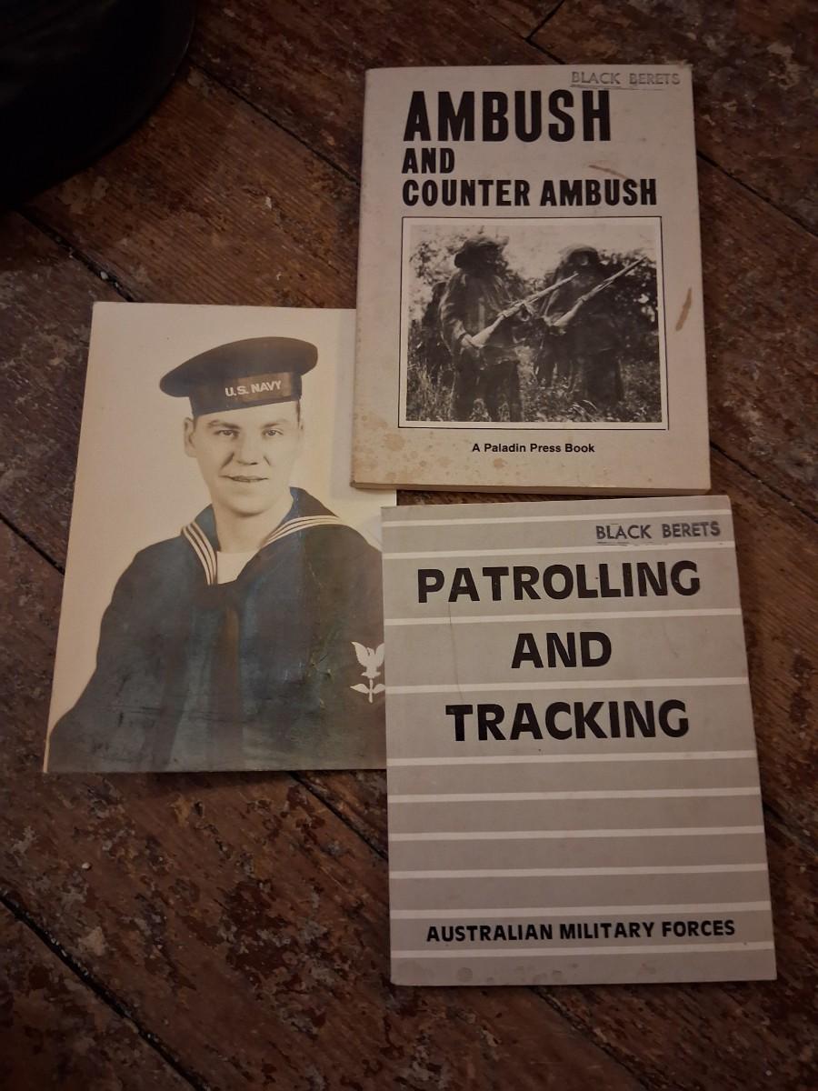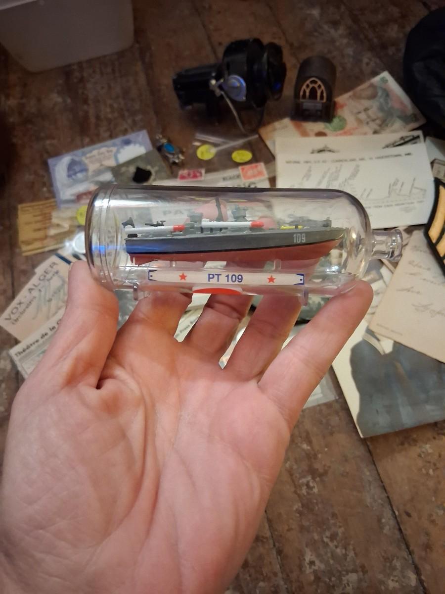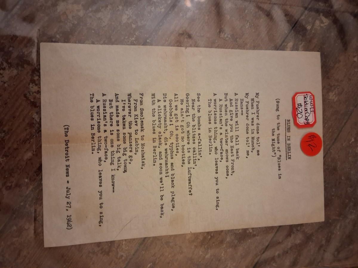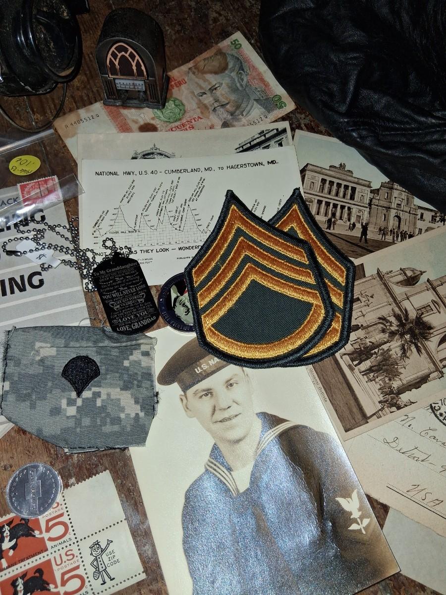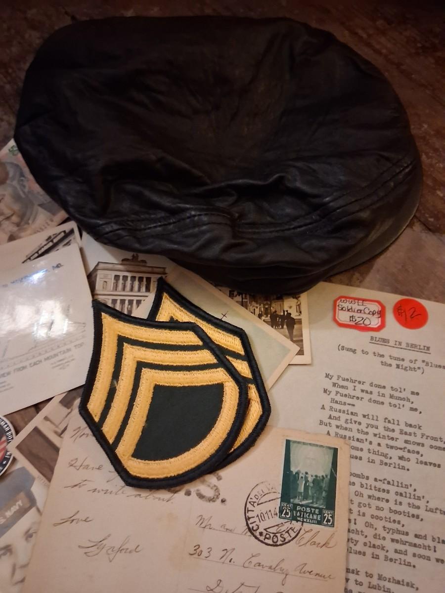 Items Include WWII Soldier carried copies of stories, poems or songs. Patches, Currency, Photos, Postcards, Jewelry, Challenge Coin, Coins, Stamps, Leather Biker Hat, WWII Black Beret Manuals, Micro Machines PT-109 & so much more