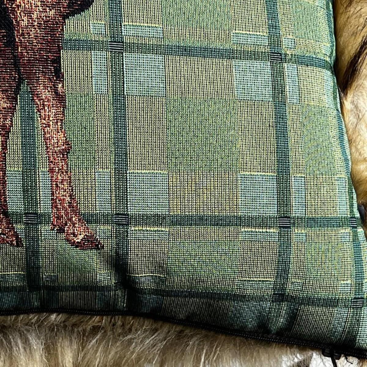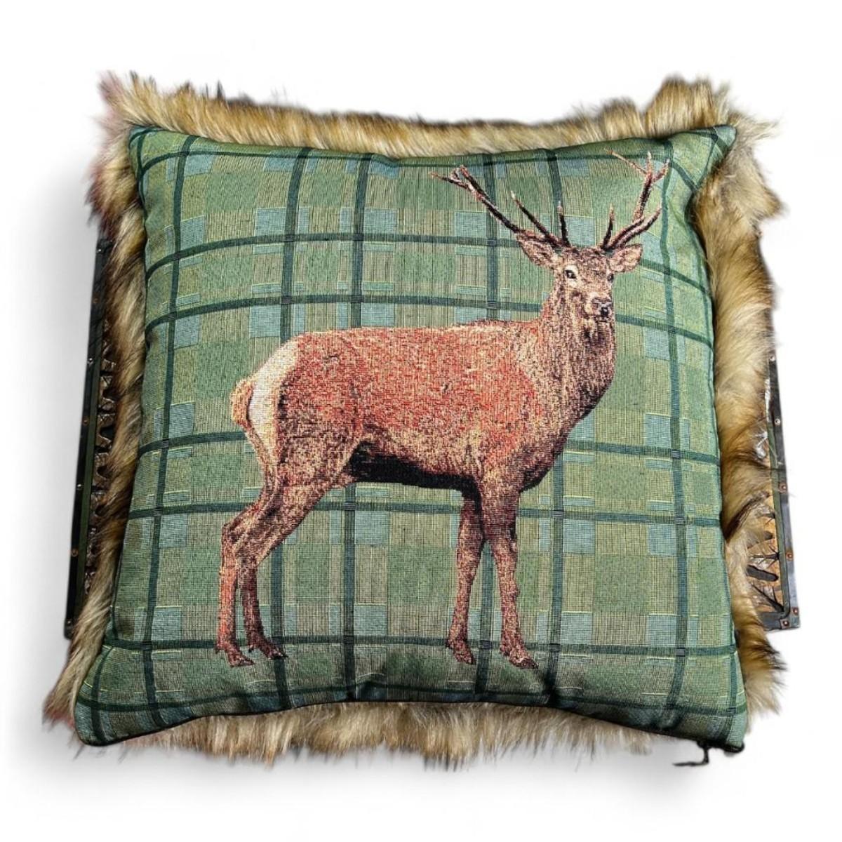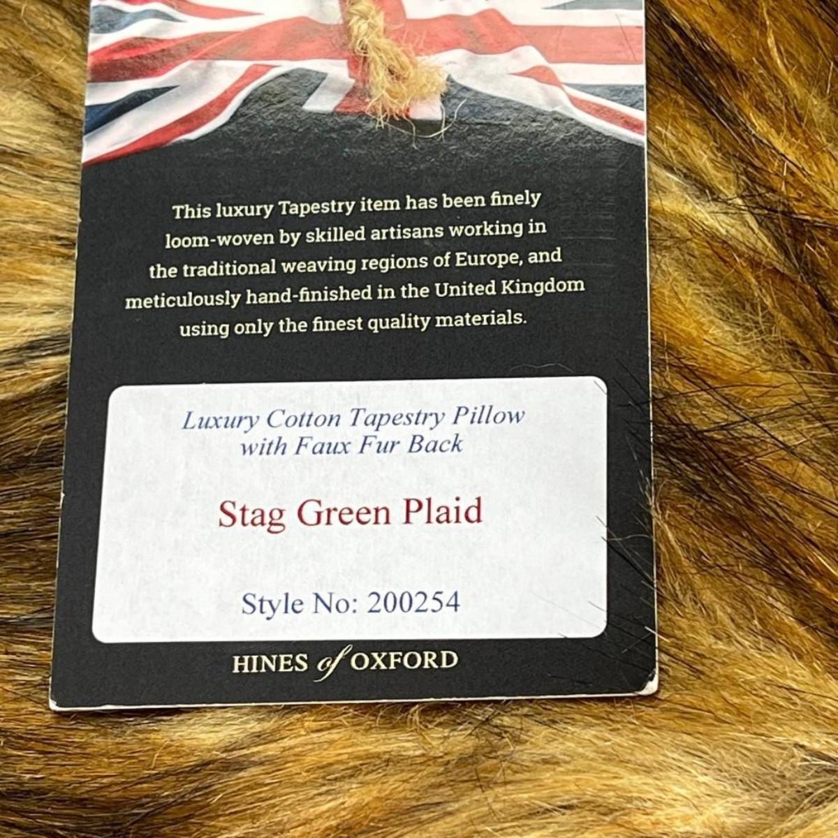 <p>Add rustic charm to your holiday decor with the Tapestry Pillow by Hines of Oxford. Featuring a stag on green plaid with a faux fur back, it&#39;s a festive Christmas accent!<br /> <strong>Condition: </strong>Brand New with Tags<br /> <strong>Dimensions:</strong>  20&#34; x 20&#34; </p>