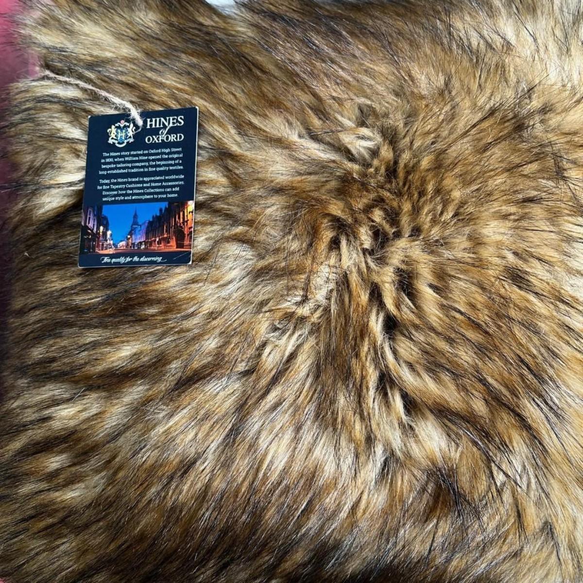 Luxury Cotton Tapestry Pillow with Faux Fur Back by Hines of Oxford - Stag Green Plaid, Christmas Decorative Throw Pillow