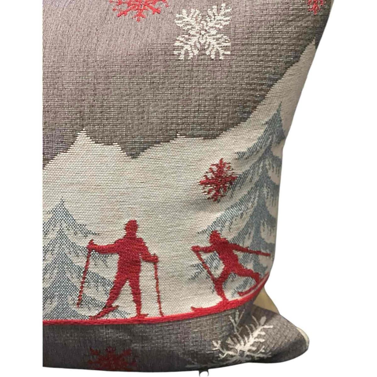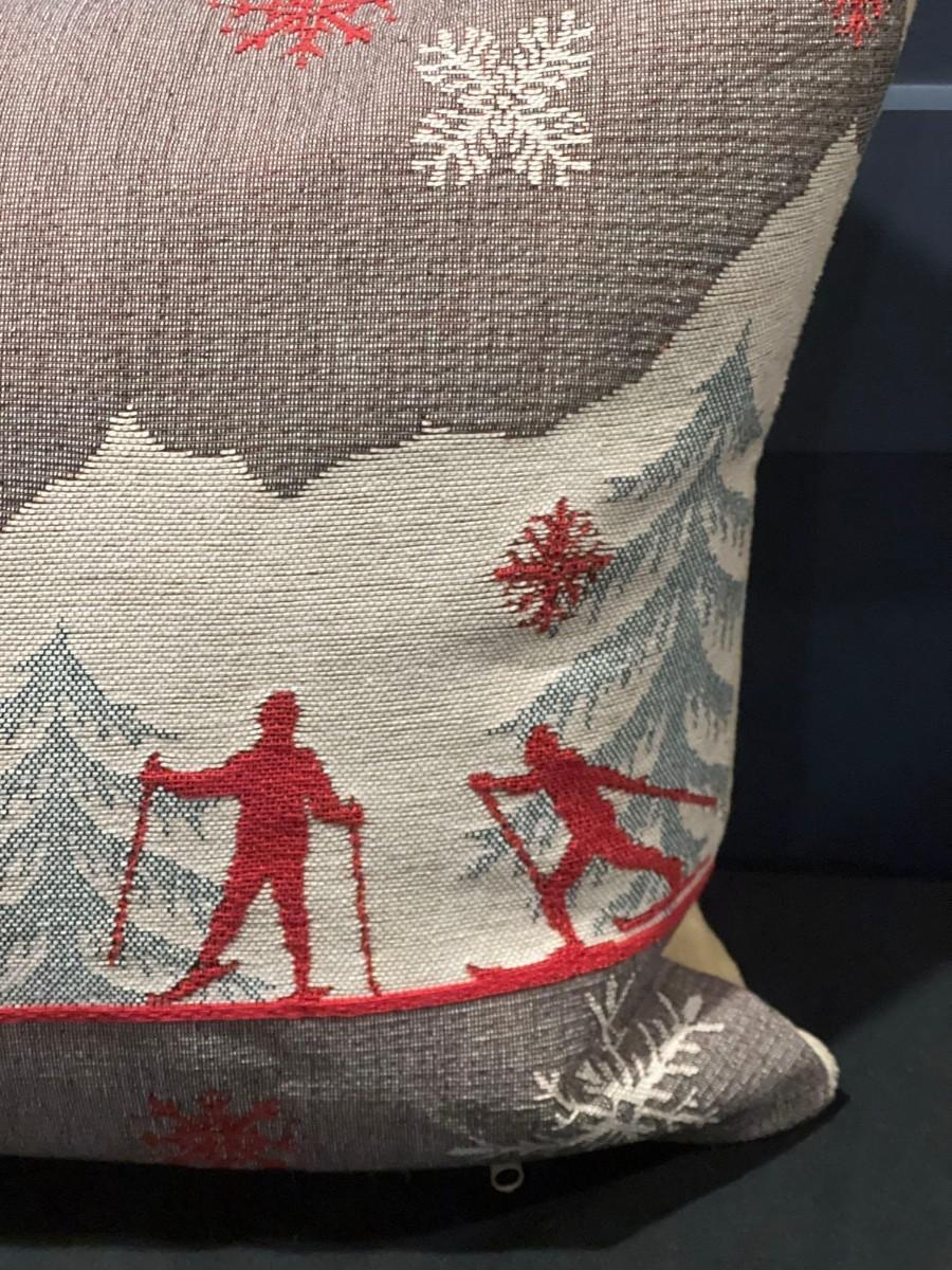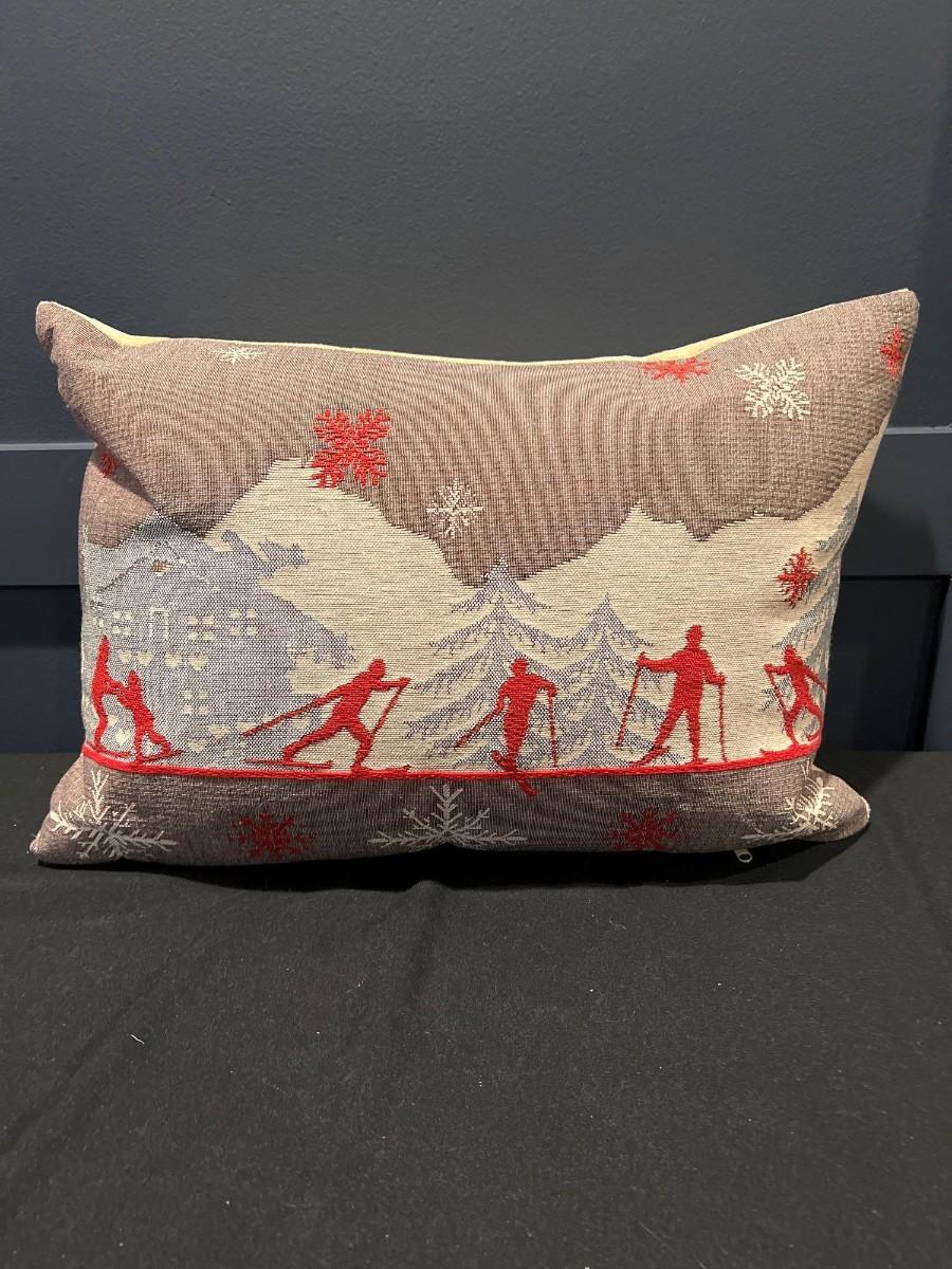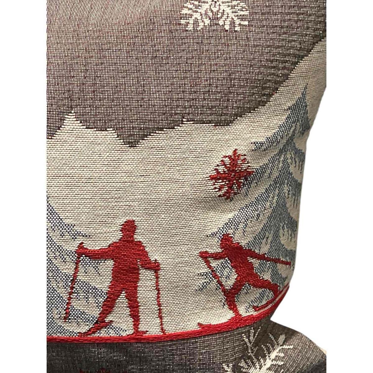 Luxury French Tapestry Lumbar Pillow by Rolande Du Dreuilh French Designer -  Nude Color Skiing Motif, Christmas Decor Pillow