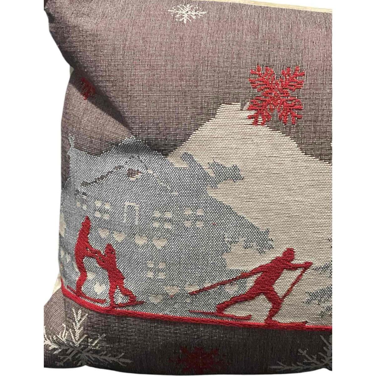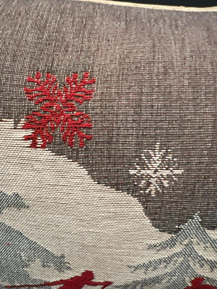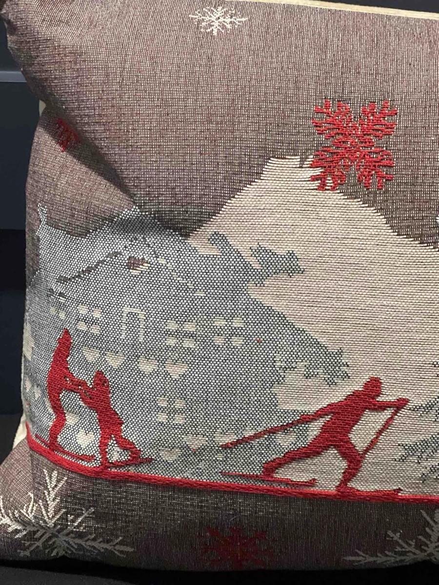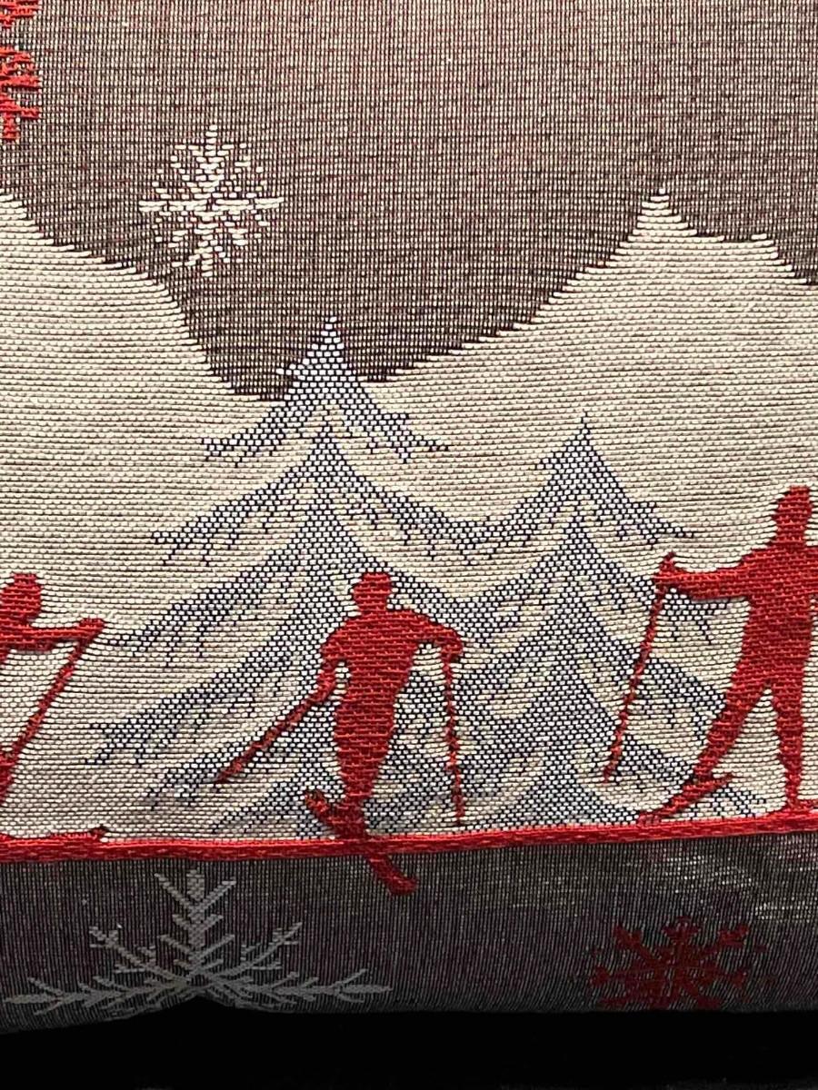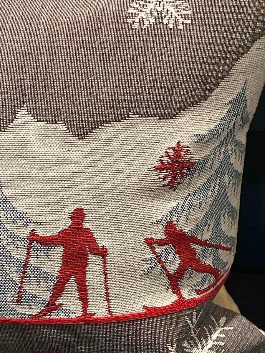 Luxury French Tapestry Lumbar Pillow by Rolande Du Dreuilh French Designer -  Nude Color Skiing Motif, Christmas Decor Pillow