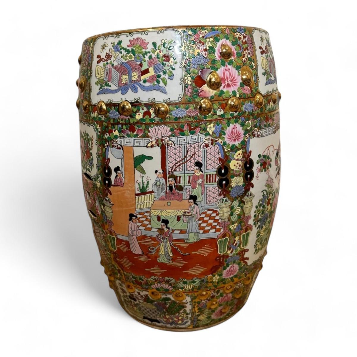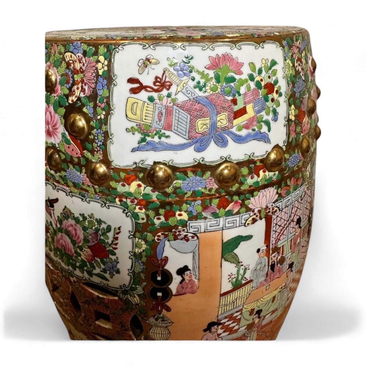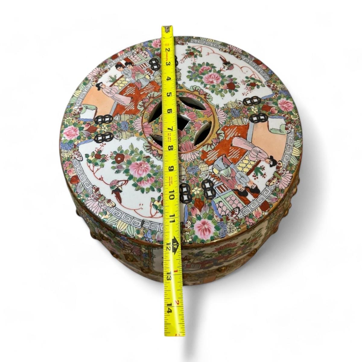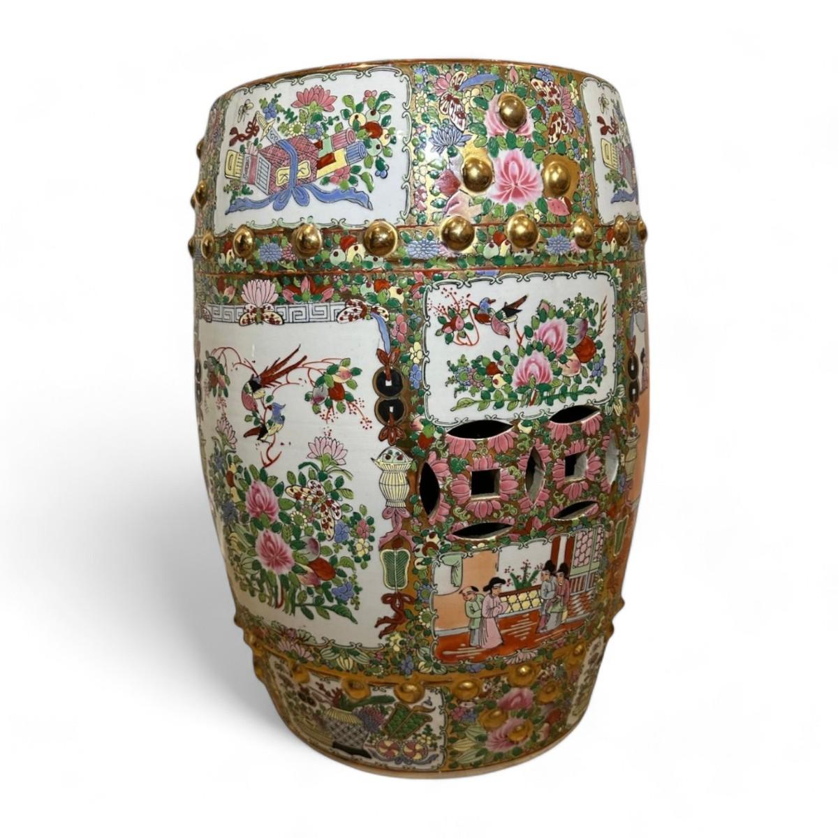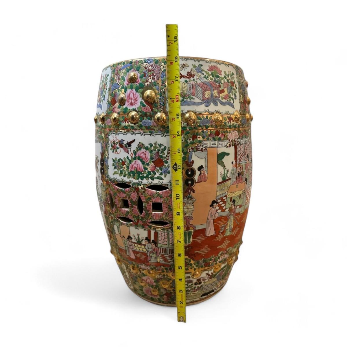 The Mid-Century Japanese Famille Rose Garden Stool is a striking piece of decorative art that blends classic elegance with functional design. Featuring vibrant Famille Rose porcelain with intricate floral patterns this stool showcases a harmonious mix of pastel hues and detailed motifs. Its mid-century style is highlighted by clean lines and a versatile form that can complement both traditional and contemporary interiors. Perfect as a statement piece in a garden or as a unique accent in an indoor space this stool marries aesthetic beauty with practical utility.