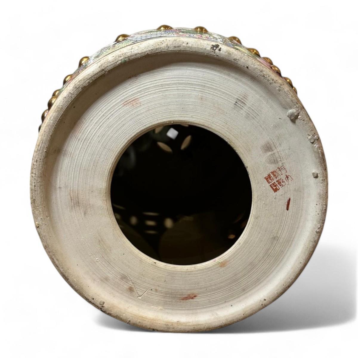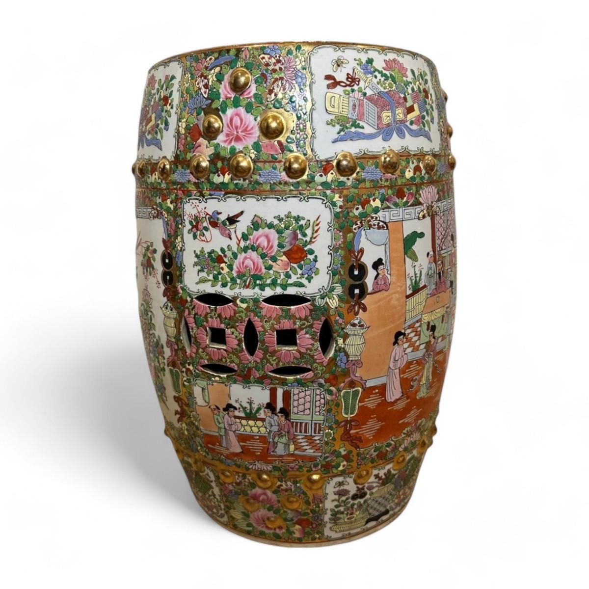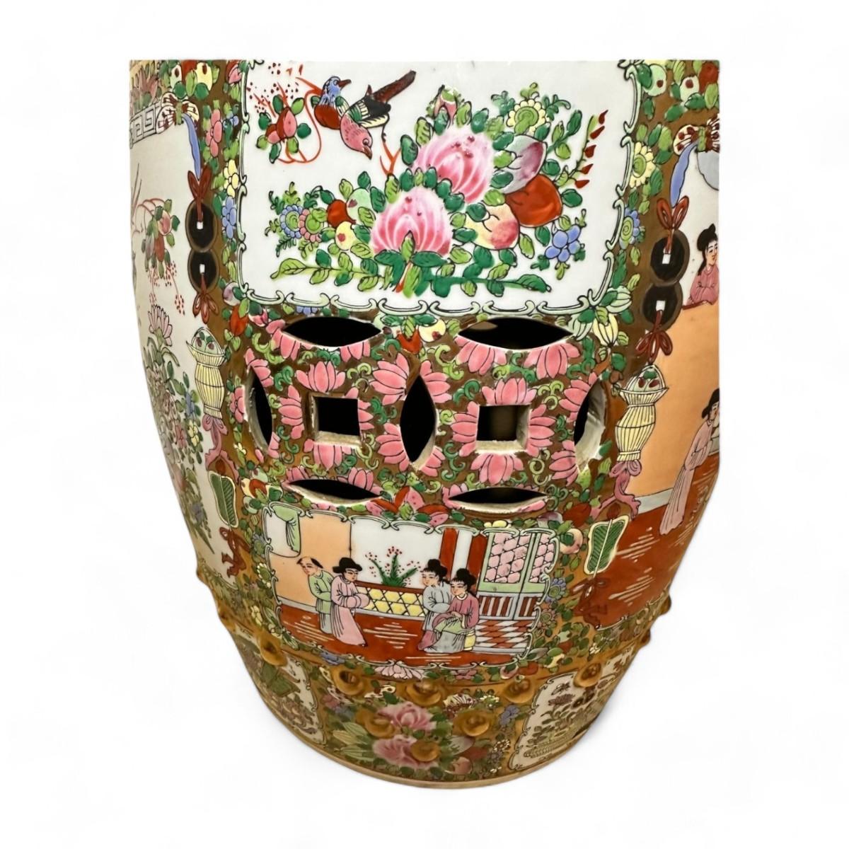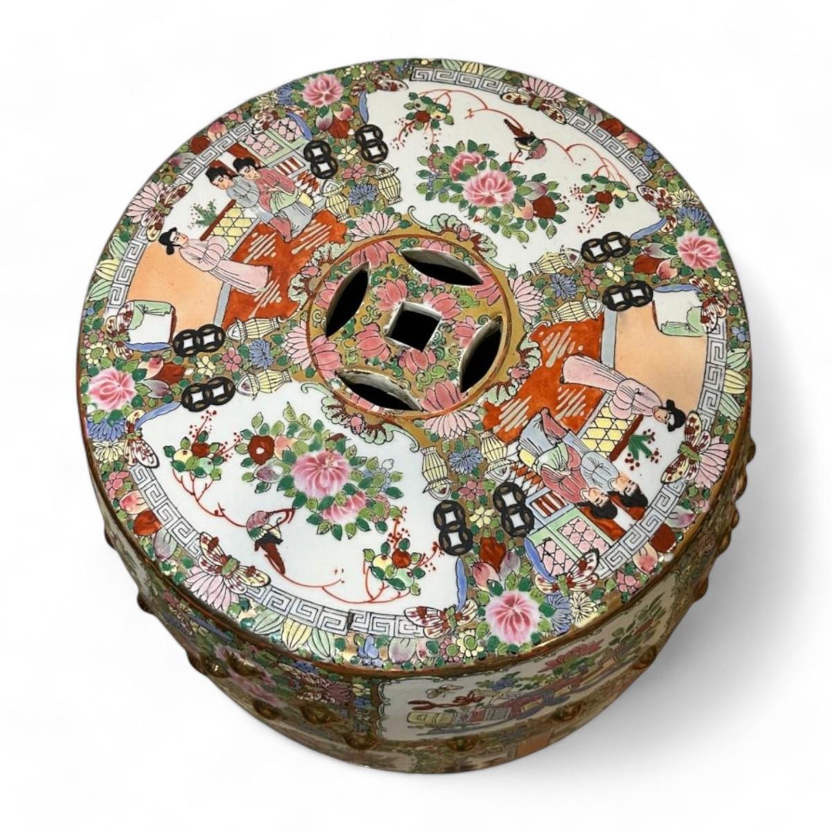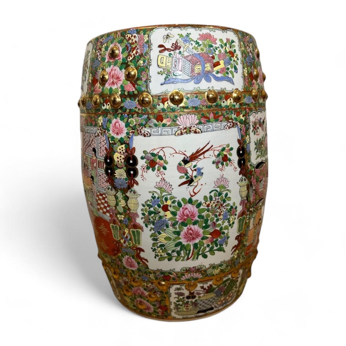 The Mid-Century Japanese Famille Rose Garden Stool is a striking piece of decorative art that blends classic elegance with functional design. Featuring vibrant Famille Rose porcelain with intricate floral patterns this stool showcases a harmonious mix of pastel hues and detailed motifs. Its mid-century style is highlighted by clean lines and a versatile form that can complement both traditional and contemporary interiors. Perfect as a statement piece in a garden or as a unique accent in an indoor space this stool marries aesthetic beauty with practical utility.