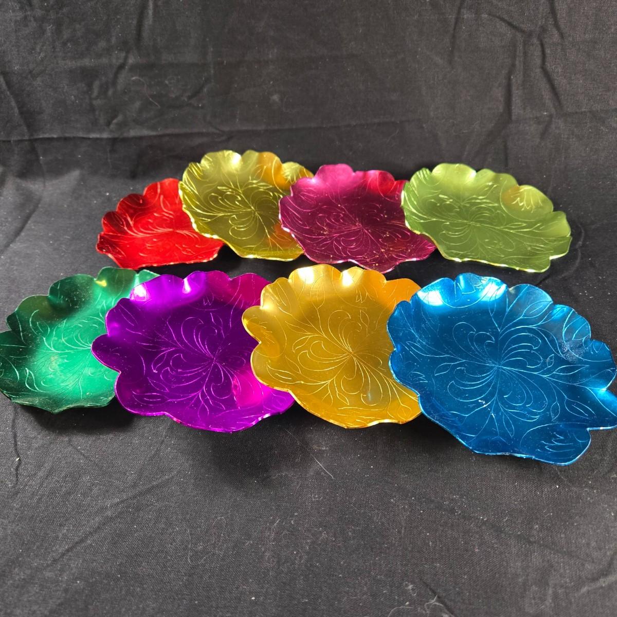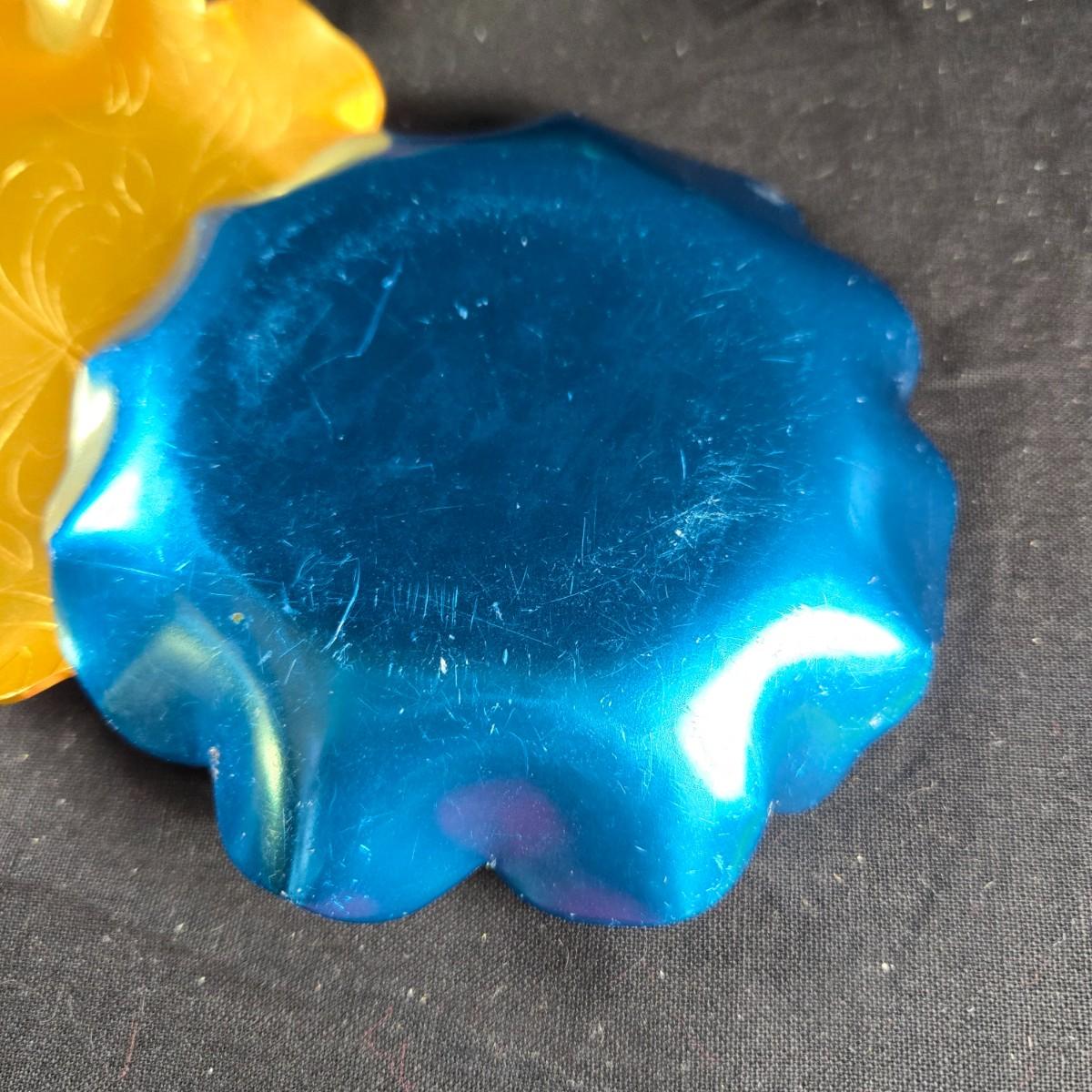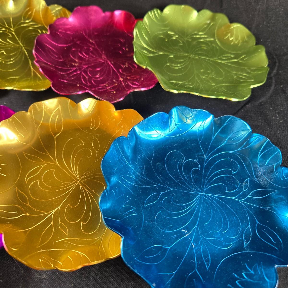 This is a very colorful and fun set of vintage mid-century aluminum coasters. They are 4.25 inches in diameter and are in lightly used condition. They are a great size to fit most modern glassware today.