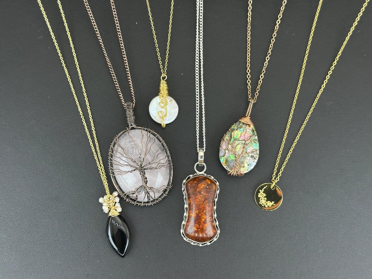 1. Mixed Jewelry Lot - Necklaces Including Onyx Pearl Amber Quartz and Abalone_x000D_
