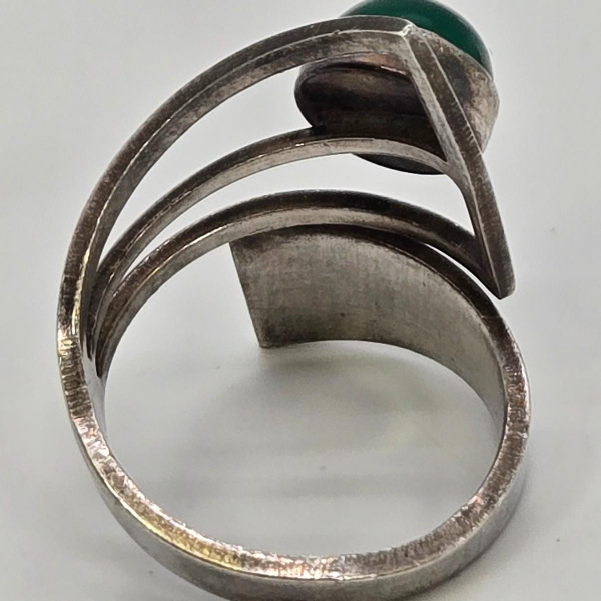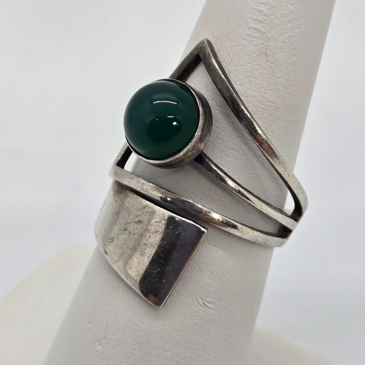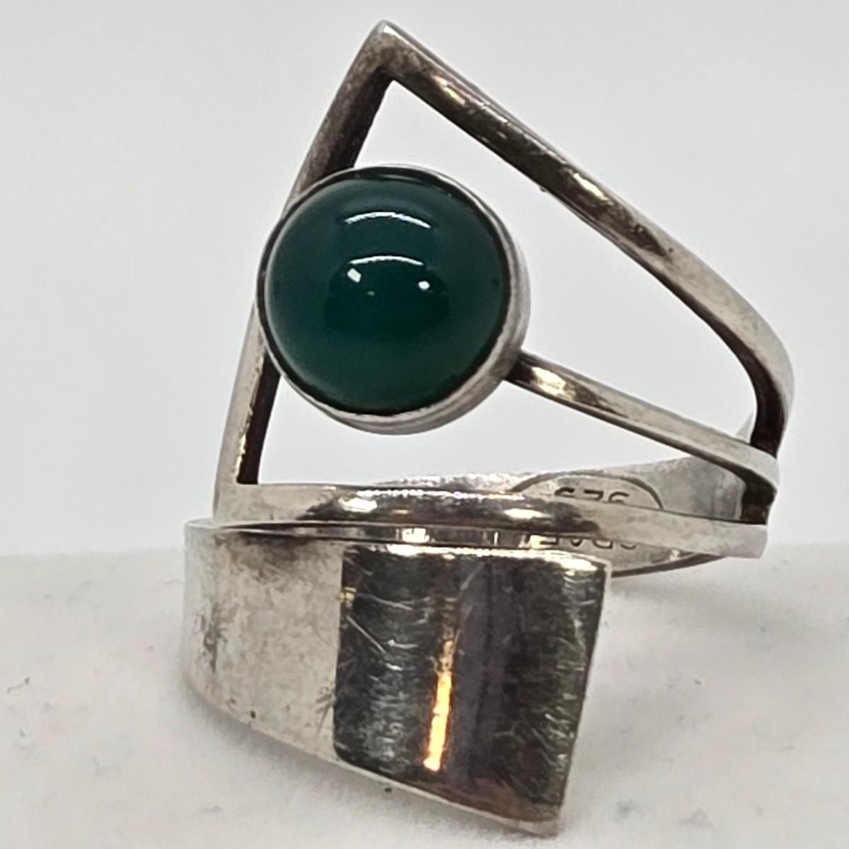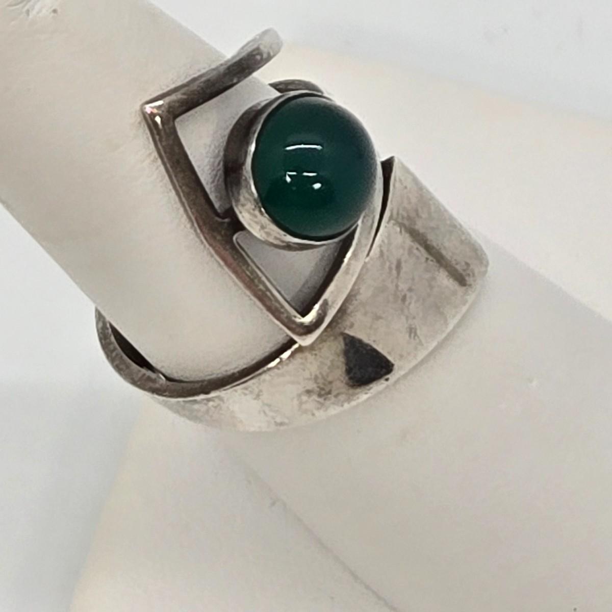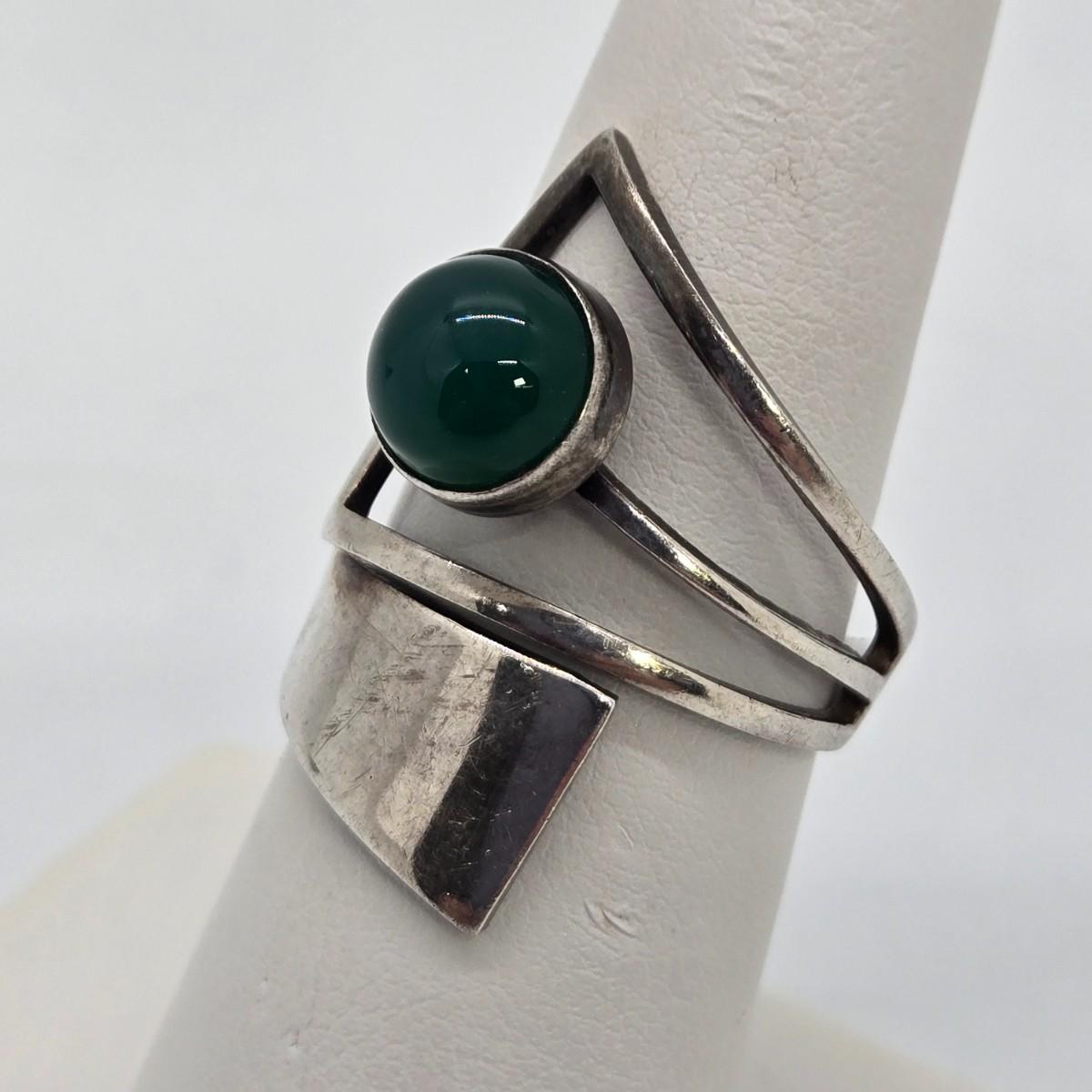 Modern Isreal 925 Silver Ring with Chrysoprase Gemstone/ Size 7