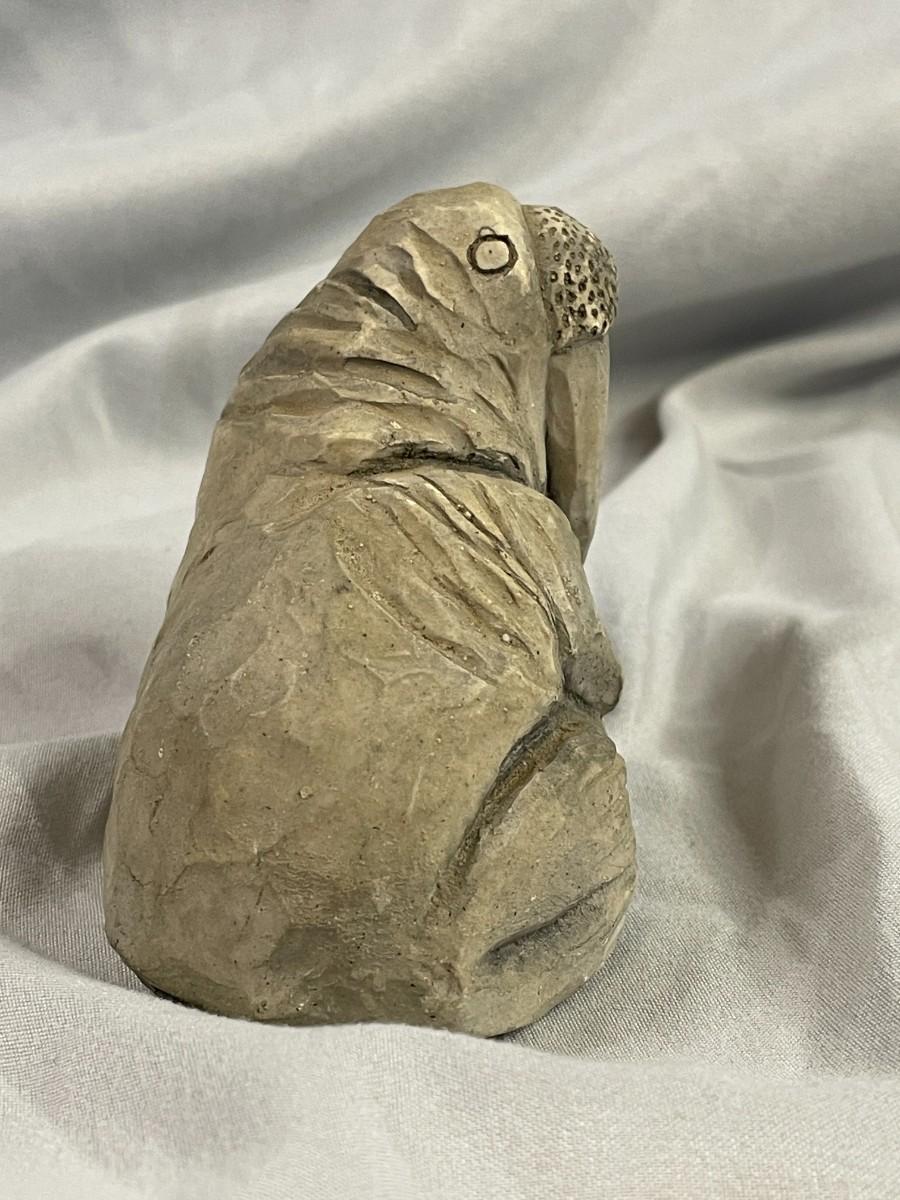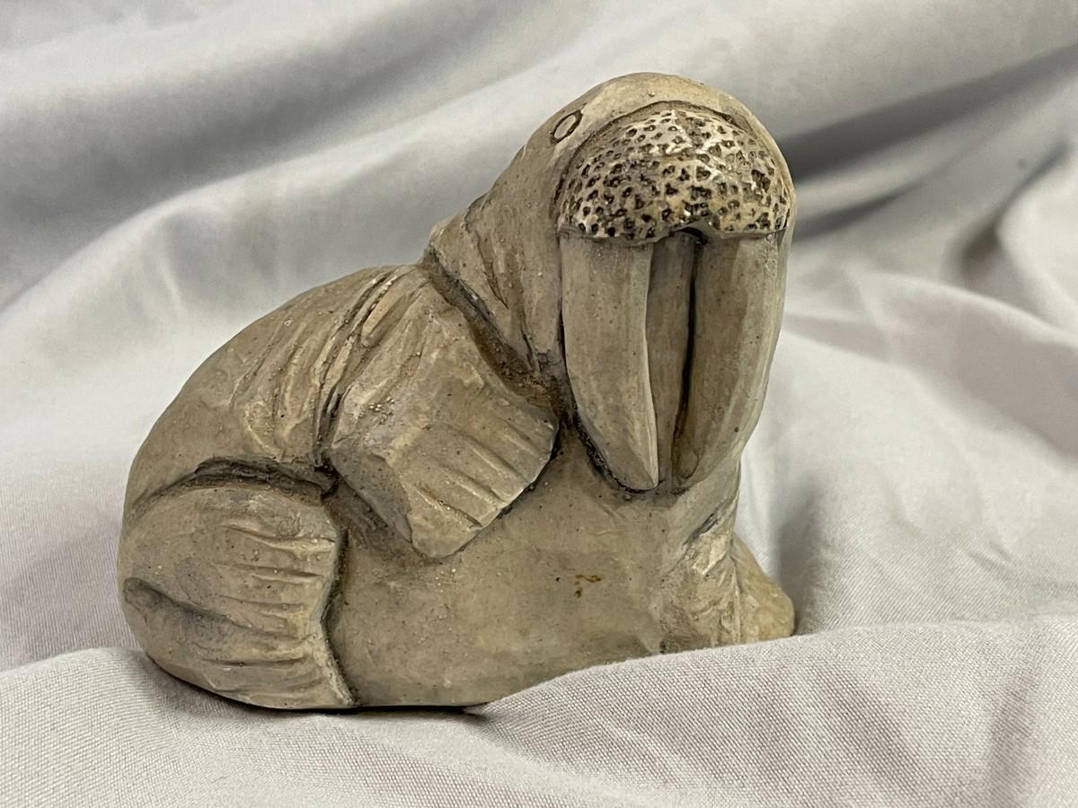 This adorable walrus is about 2.75 inches tall and 3.25 inches long. He was sculpted from volcanic ash that spewed from Mount St Helens in Washington.