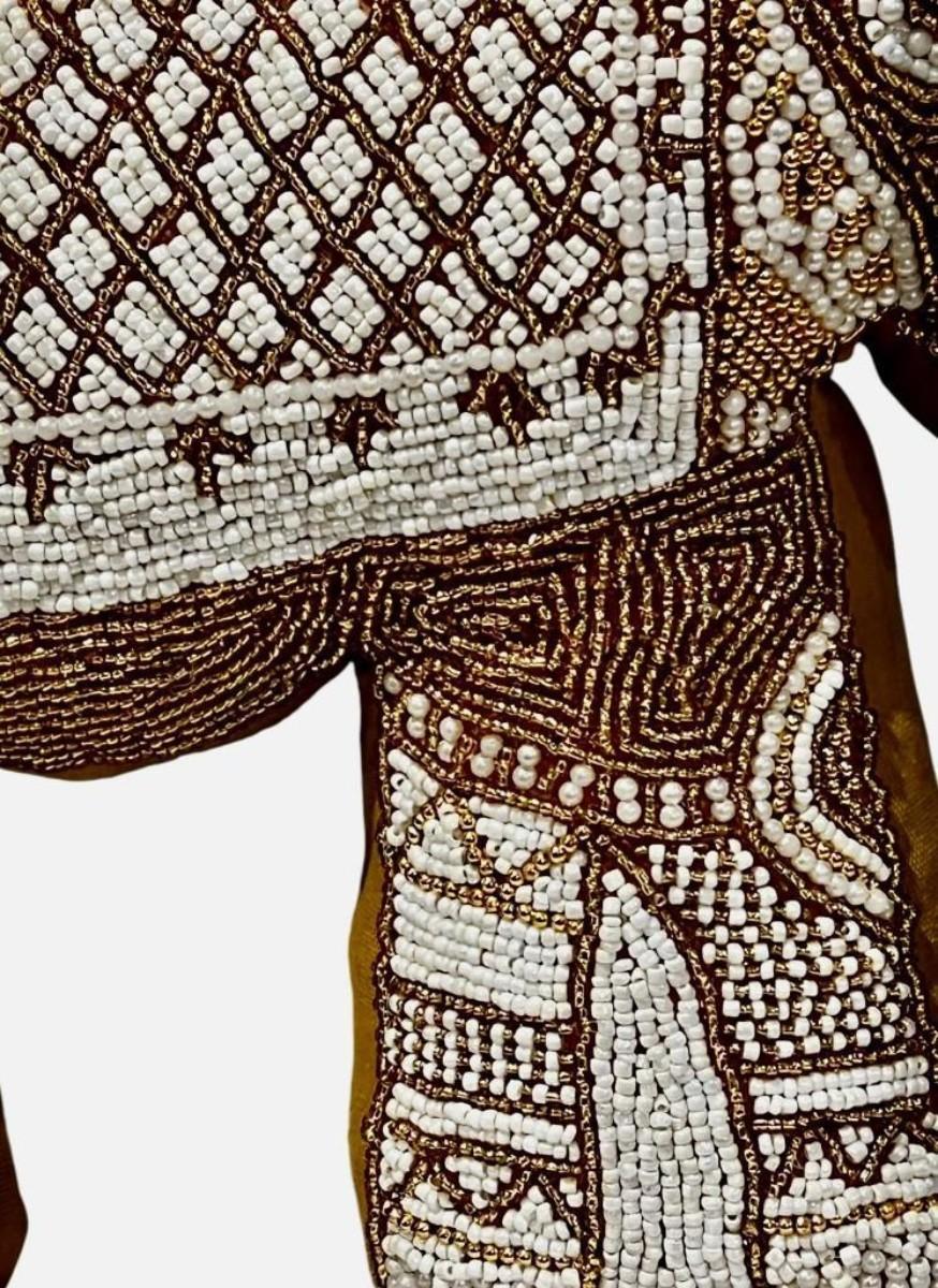 <p>Luxurious mustard velvet pillow featuring an intricately hand-beaded and embroidered elephant design. A stunning accent piece for boho or eclectic decor.</p> <strong>Condition:</strong> No damage noted.<br /> <strong>Dimensions: </strong>TBA<br />