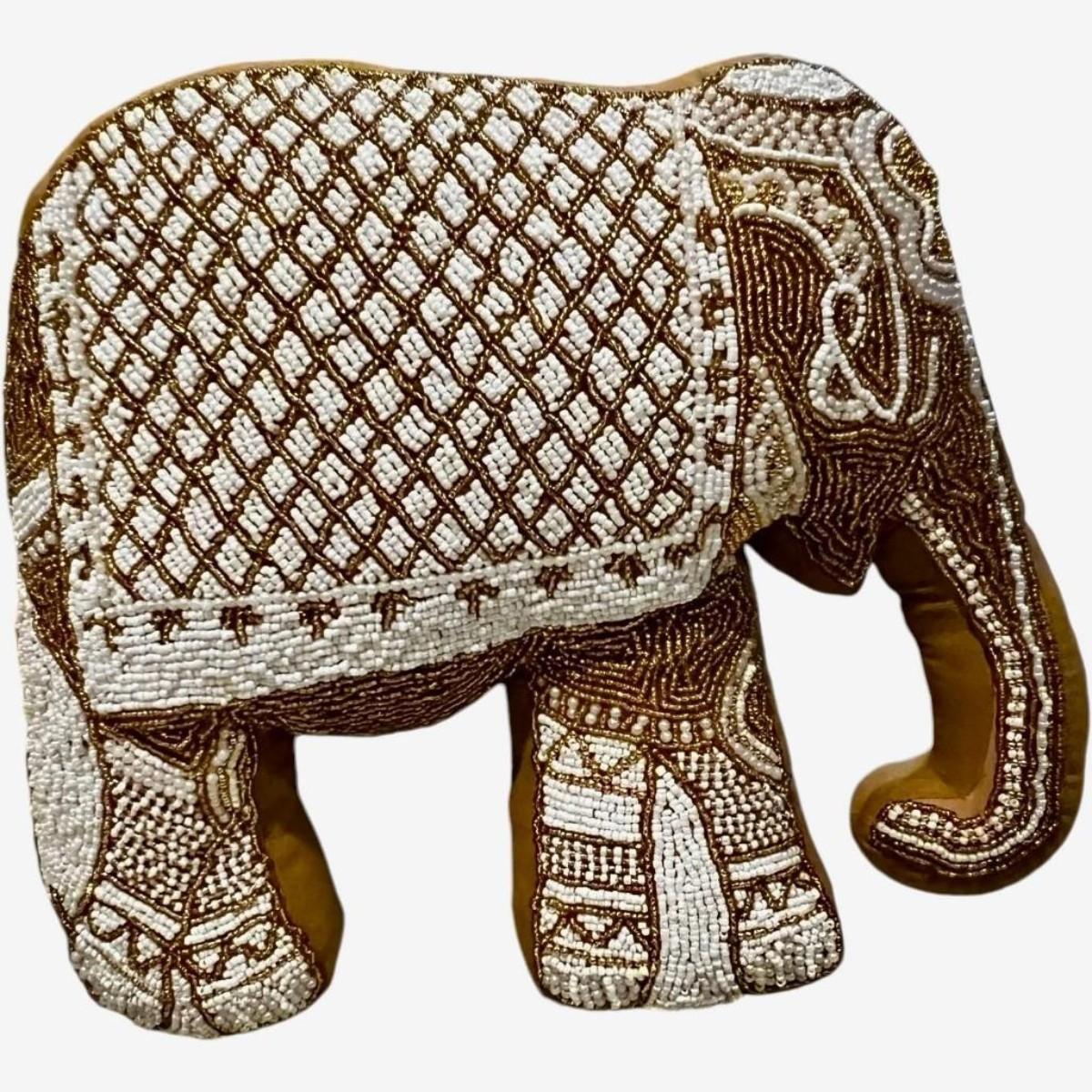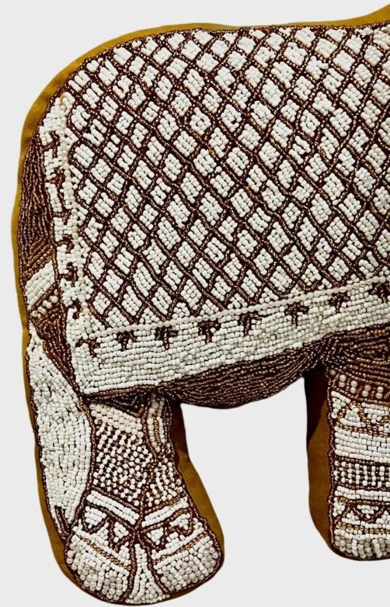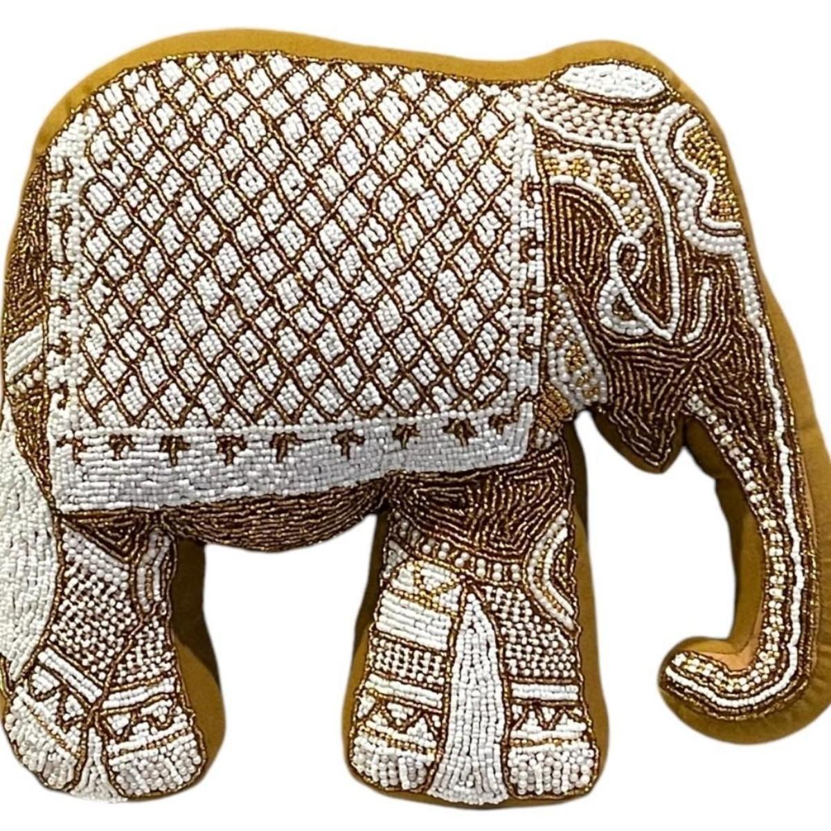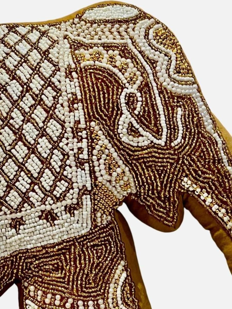 Mustard Velvet Elephant Hand-Beaded Embroidered Decorative Pillow