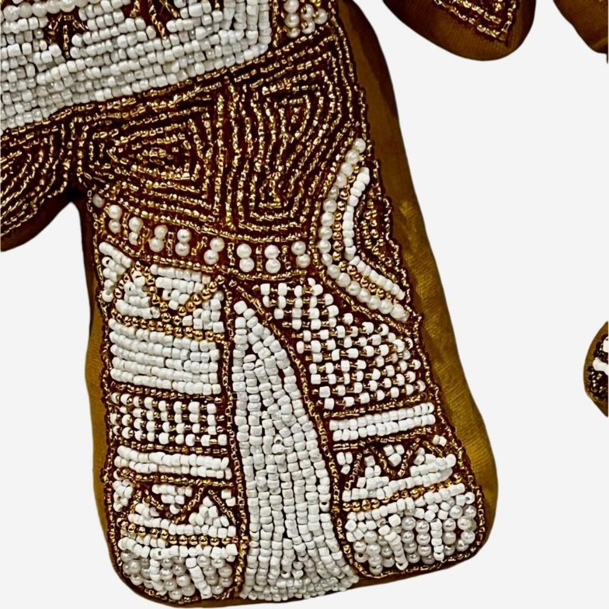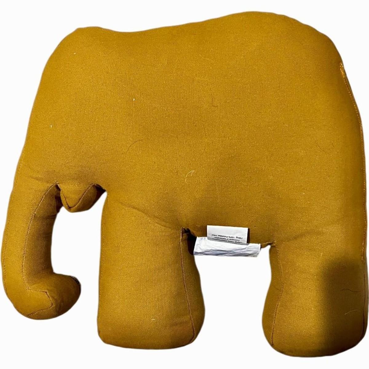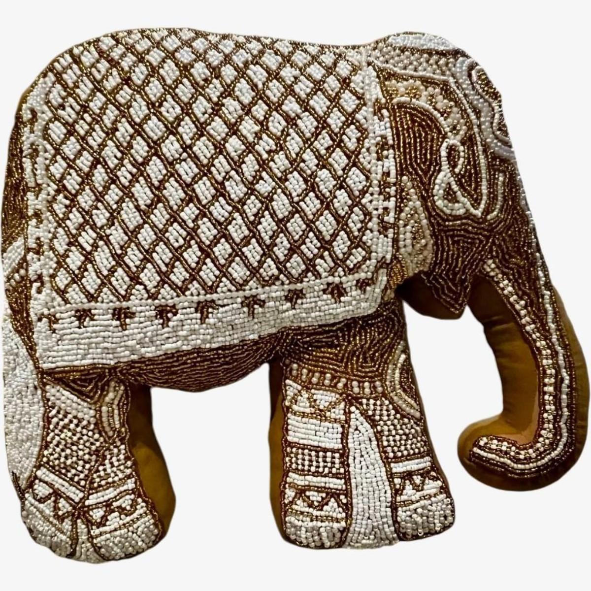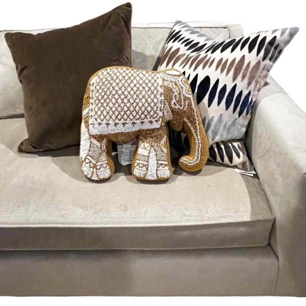 Mustard Velvet Elephant Hand-Beaded Embroidered Decorative Pillow