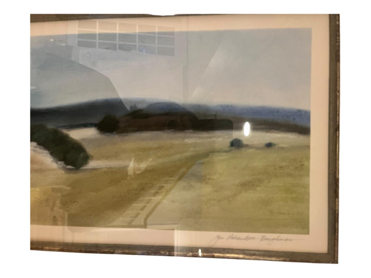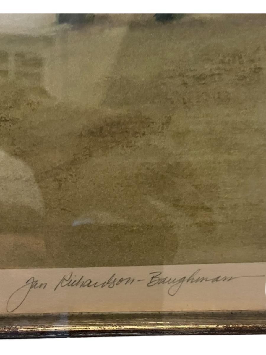 <strong>Artist</strong>: Janet Richardson-Baughman<br /> <strong>Title</strong>: Along the Way<br /> <strong>Medium</strong>: Oil on Canvas<br /> <strong>Frame Size</strong>: 21&#34; L x 50&#34; W<br /> <strong>Painting Size</strong>: 11&#34; L x 40&#34; W<br /> <strong>Condition</strong>: Brand New (refer to condition index key in the policies section)<br /> <strong>Design Features</strong>: This breathtaking landscape painting by Janet Richardson-Baughman captures the serene beauty of nature. The artwork is beautifully framed and ready to display.<br />