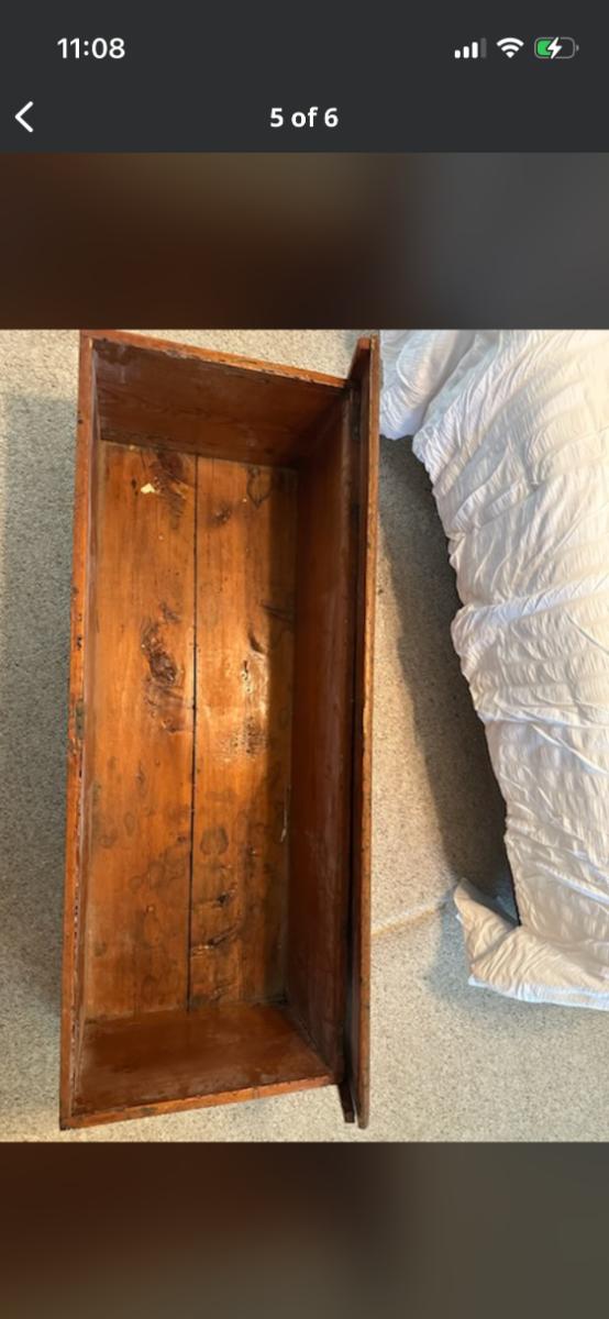 Authentic 1840-1860 camel back trunk storage chest. Victorian era - pine hardwood piece with dovetail joinery and hand crafted metal handles.