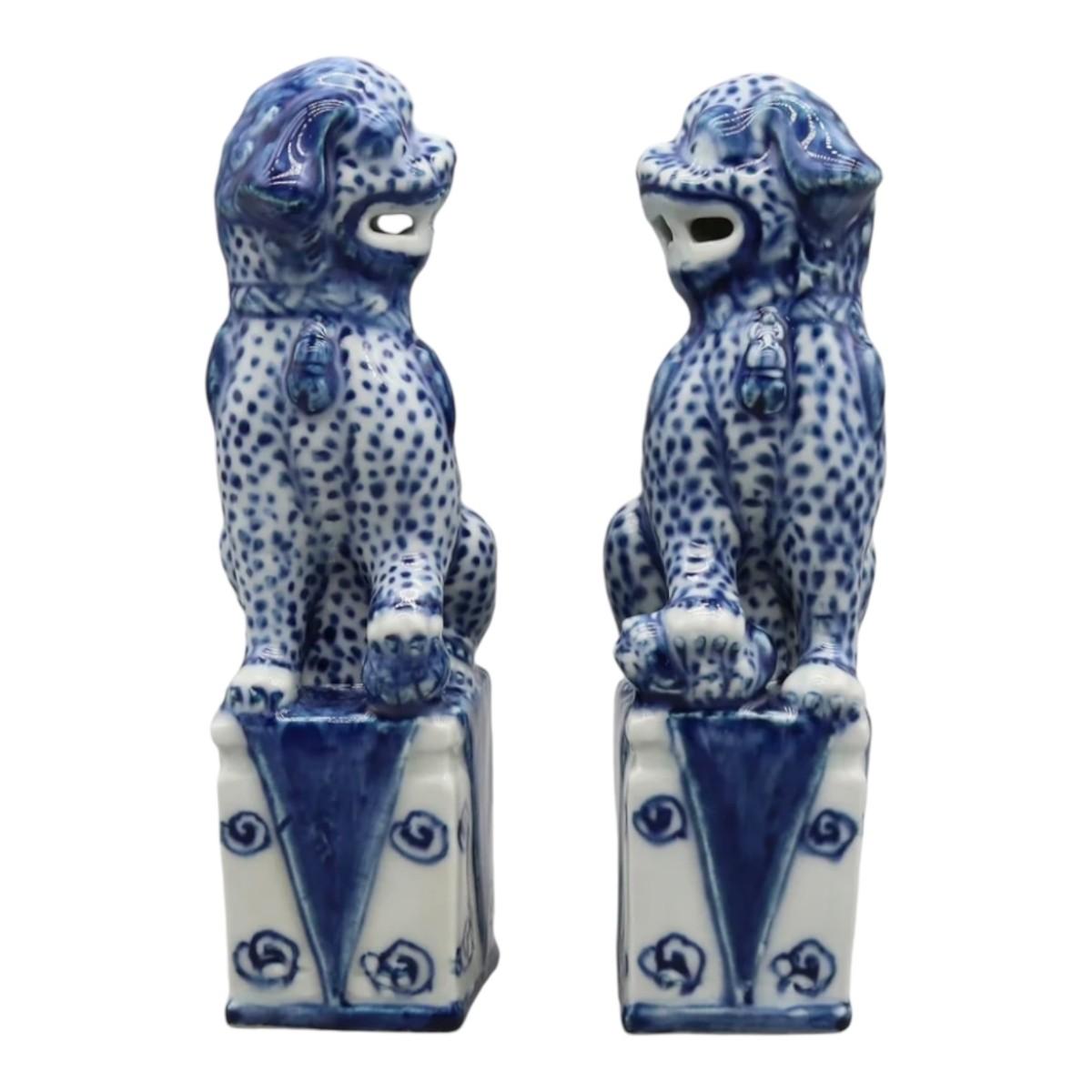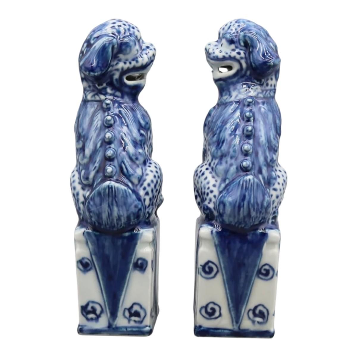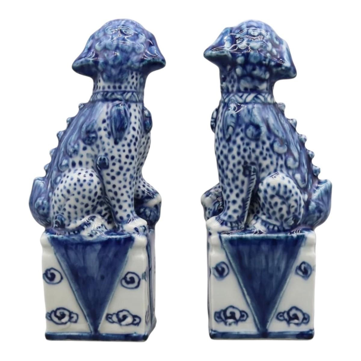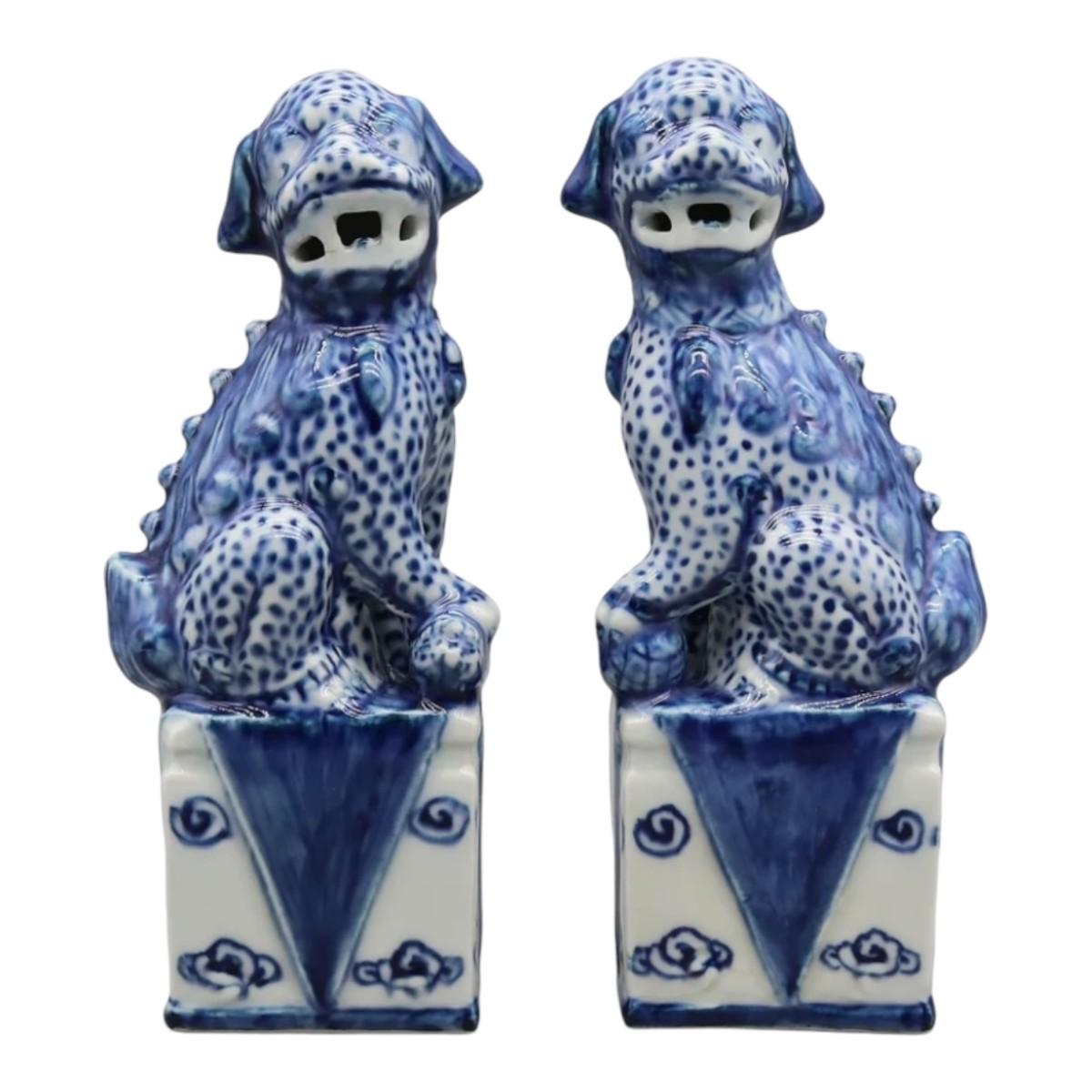 Pair Of Blue And White Hand-painted Foo Dogs Bookshelf Decor Chinoiserie Pair Of Guardian Lions Blue And White Hand-painted Bookshelf Decor Chinoiserie