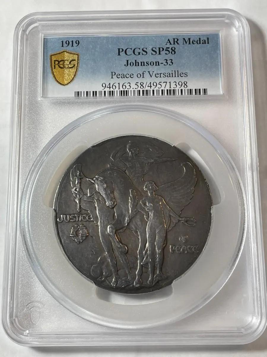 PCGS Certified 1919 AR Medal Johnson-33 Peace of Versailles Silver Medal #58/113 Made Population-1 No Other Silver Medal Graded! (SP-58 in a Large Oversized Holder). FREE Domestic Shipping.