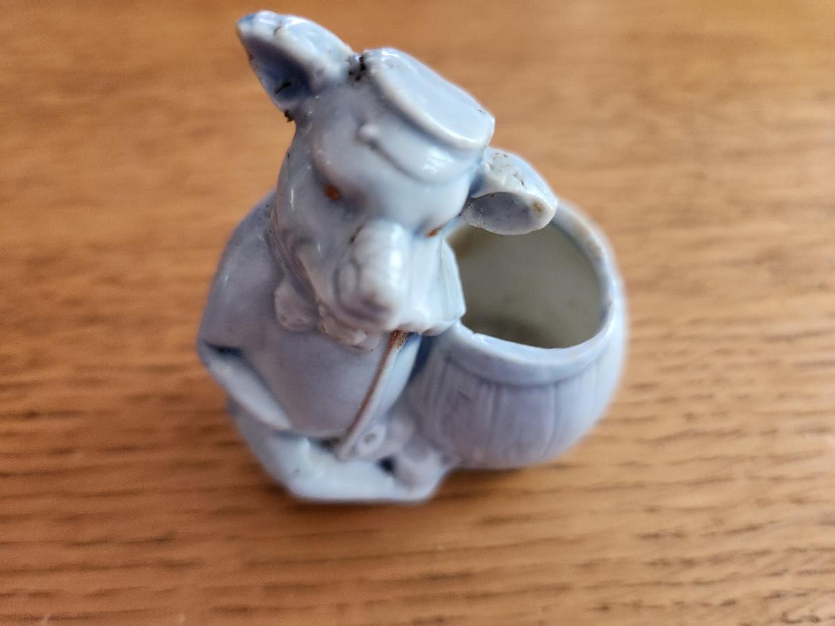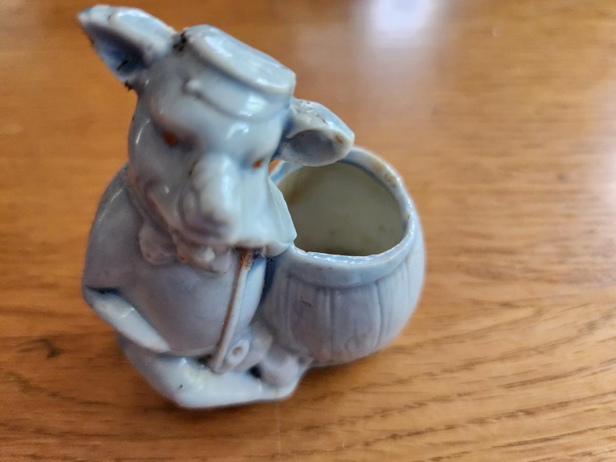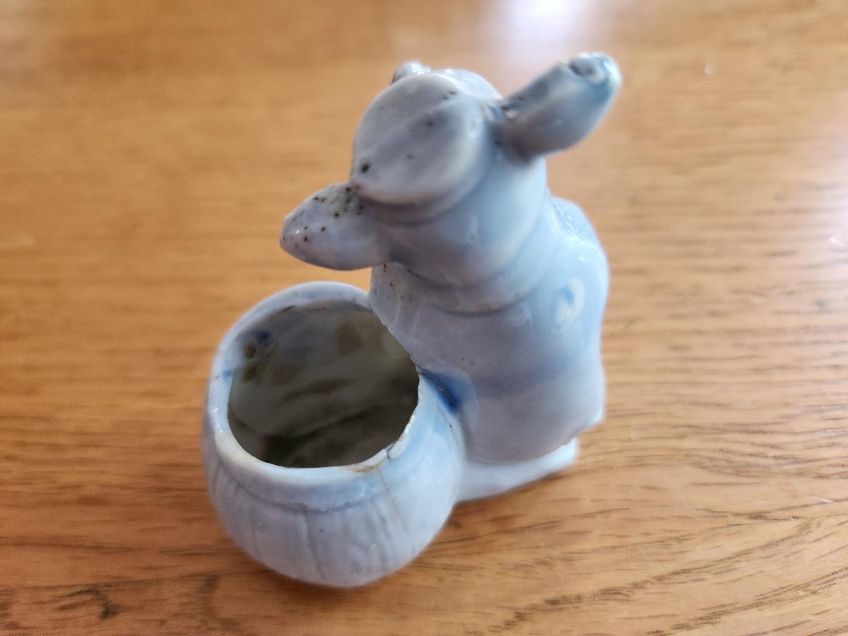 This sweet little item is a Petite Blue Piggy Planter. This unusually small planter would be perfect for a small succulent plant to sit on your desk or windowsill. Where you gonna find another.