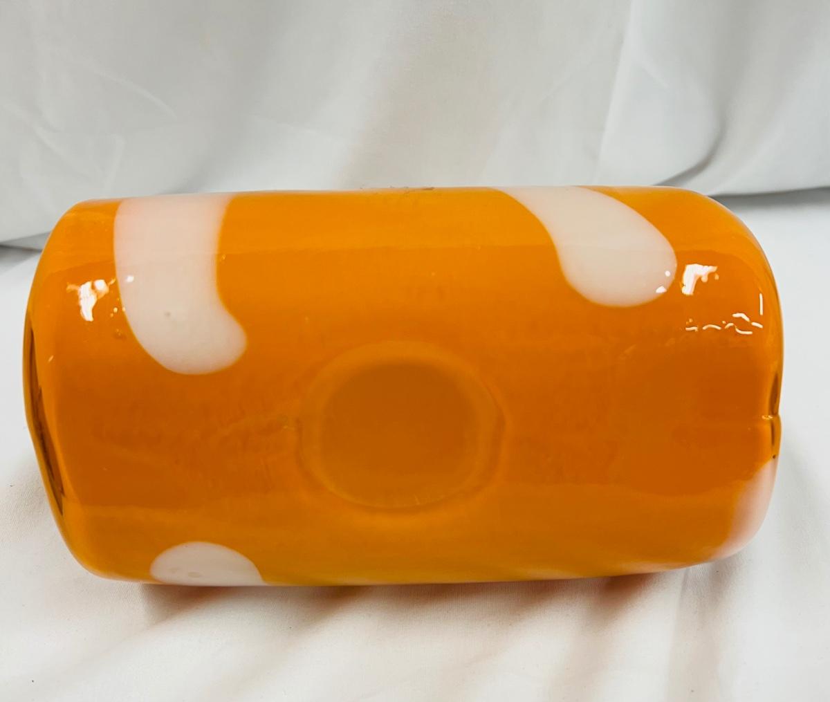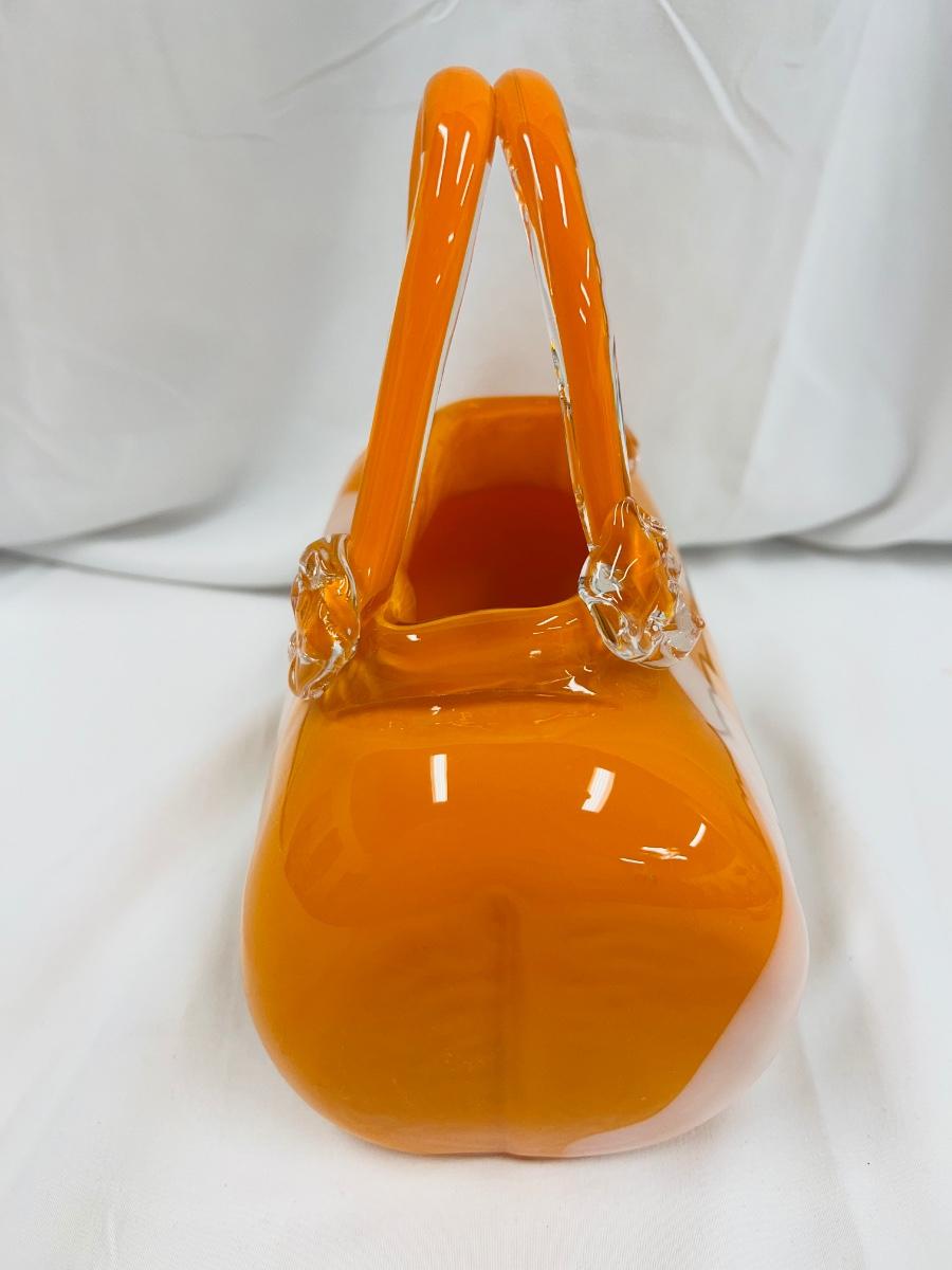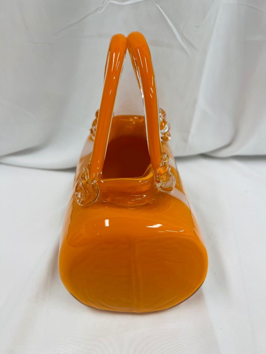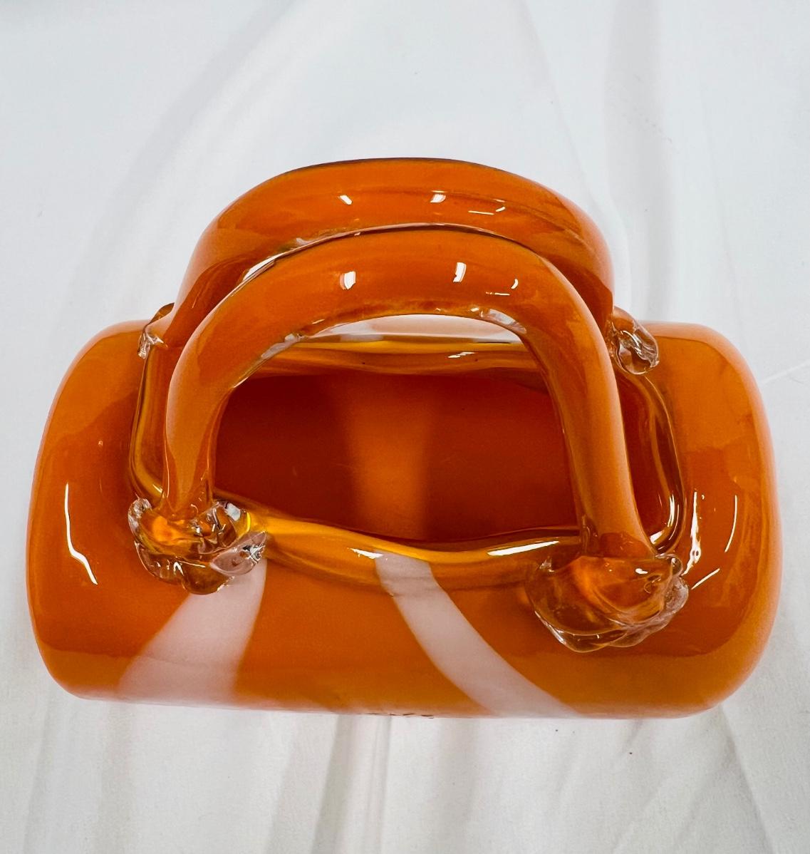 Art Deco Style Handblown Orange Art Glass Handbag Purse Vase with White lines very unique.