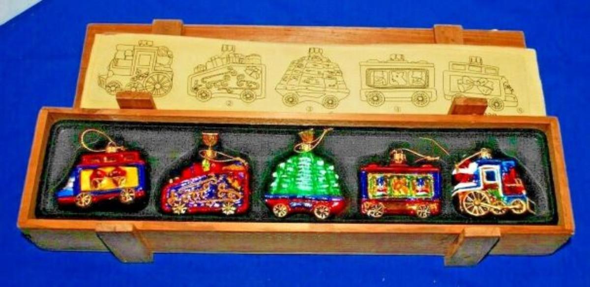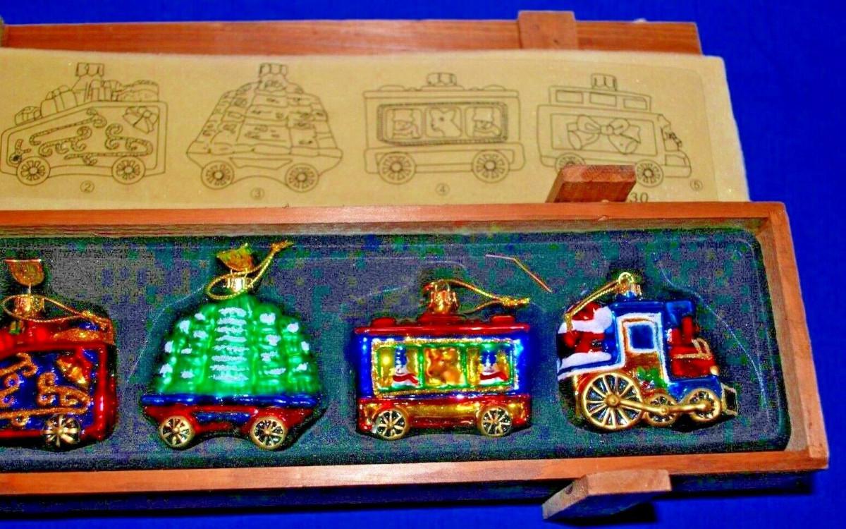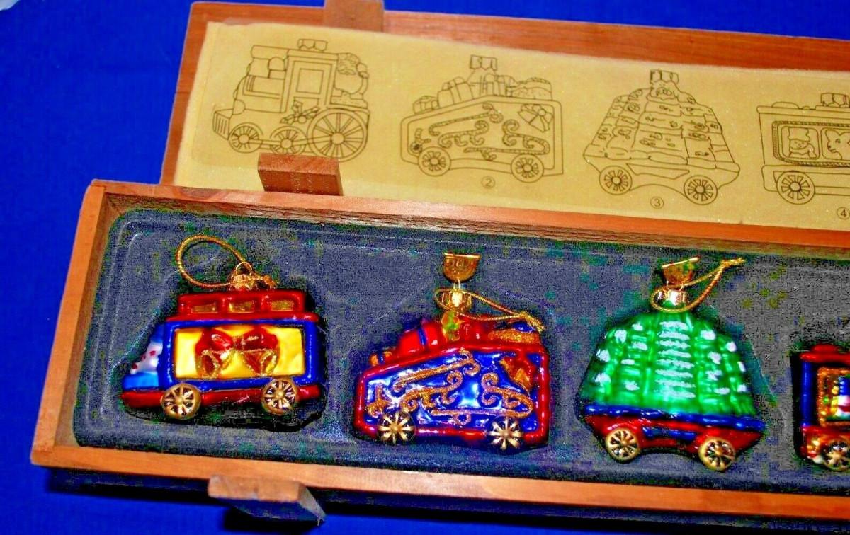 RARE 2003 T. PACCONI COLLECTION GLASS HOLIDAY TRAIN ORNAMENTS