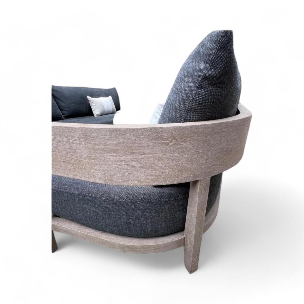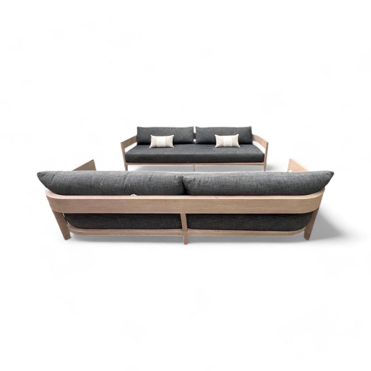 Restoration Hardware Outdoor Weathered Teak Sofa with Cushions, 108" Balmain - Brand New
