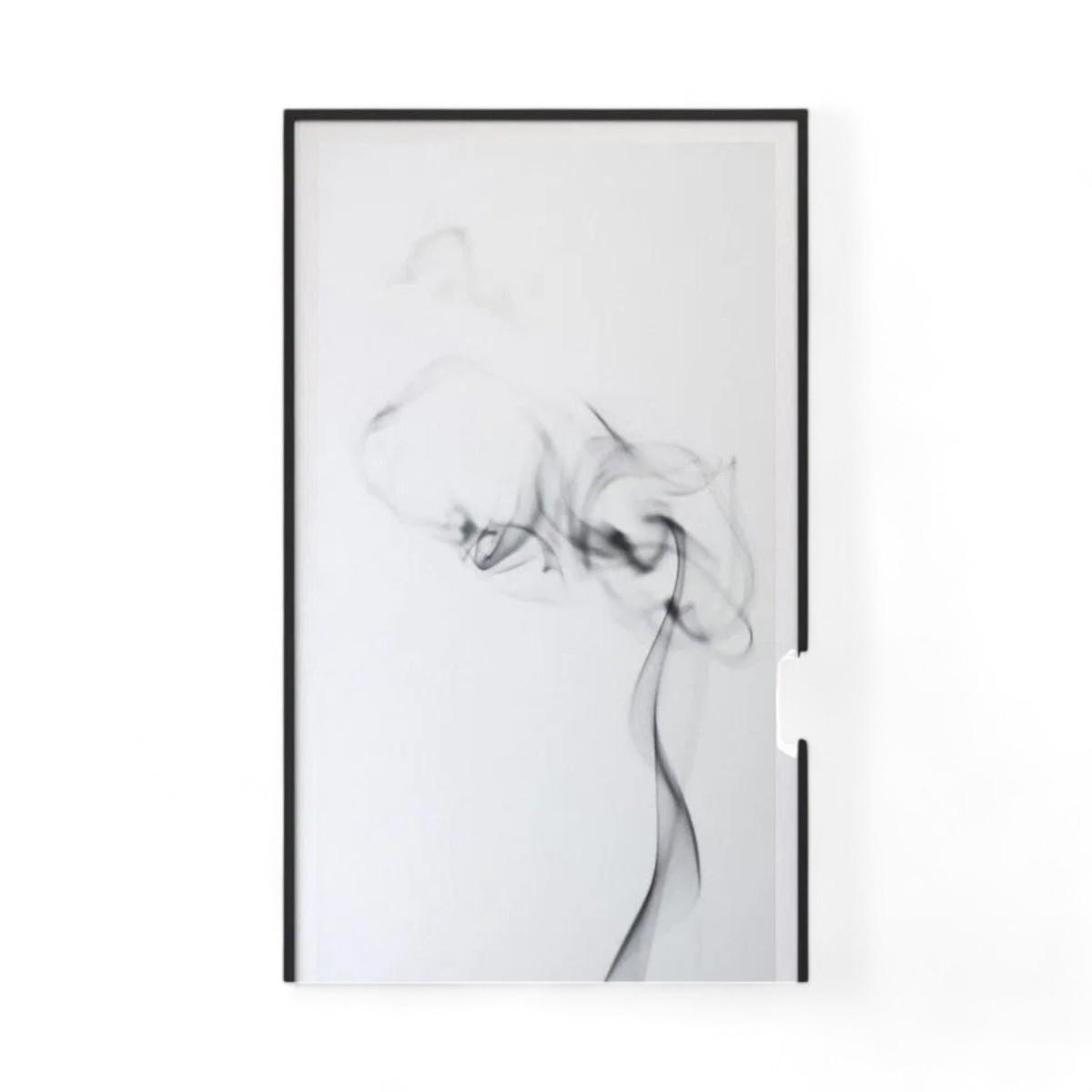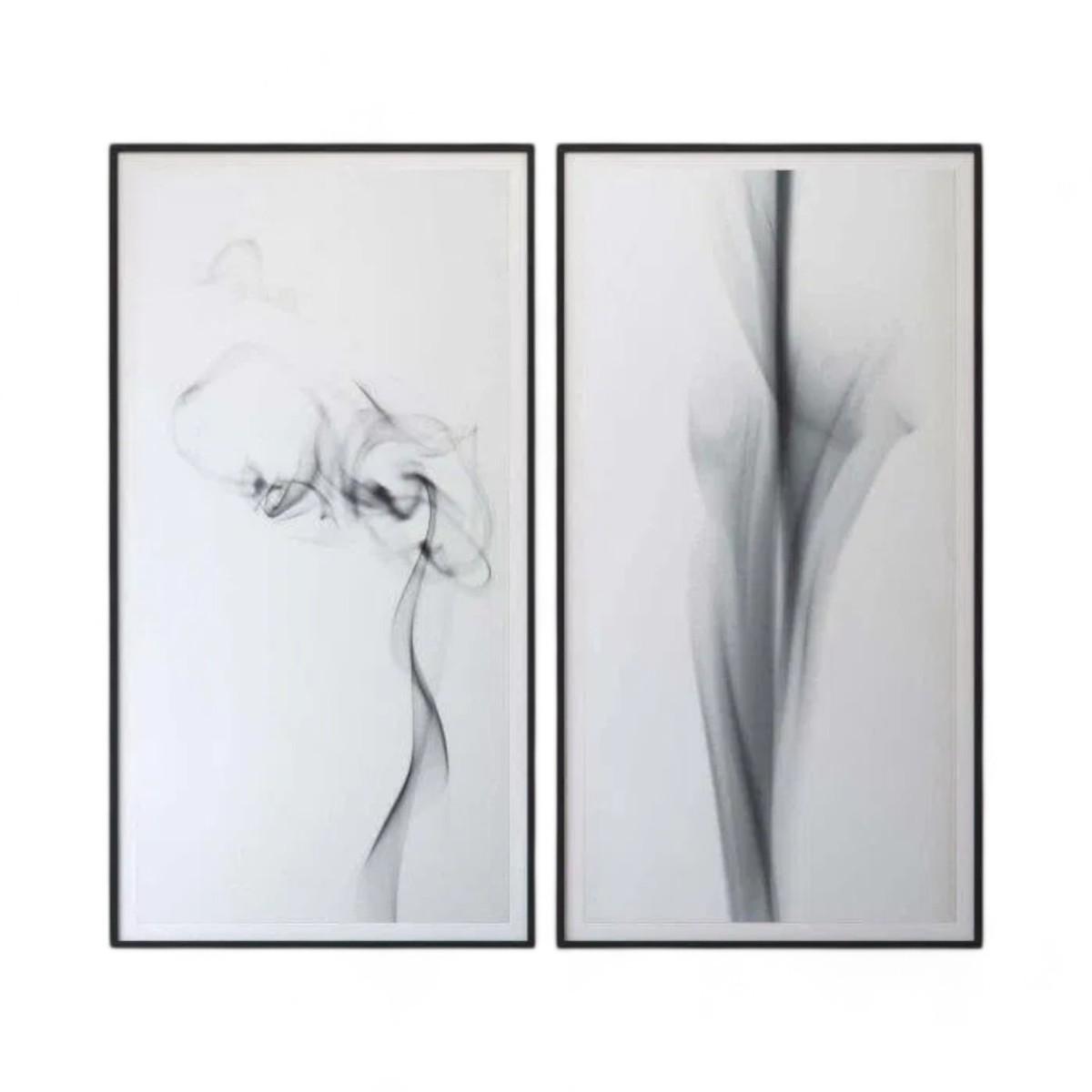 Design Features: This striking piece from Vicente Franco's "Smoke" collection captures the whimsy of rising trails of smoke, with delicate streaks and tendrils articulated in grey scale against a white background. Noteworthy for his accomplishments in cinematography, Franco brings a cinematic quality to his still photography.