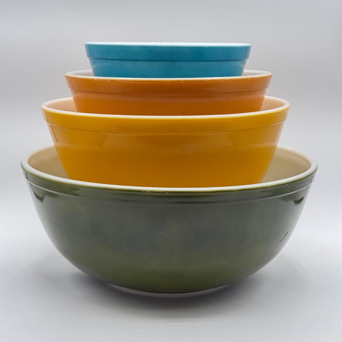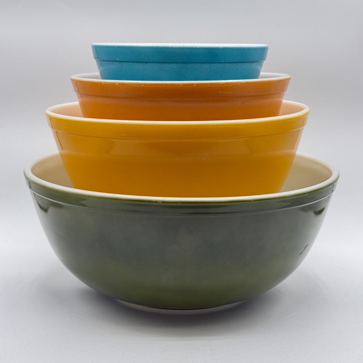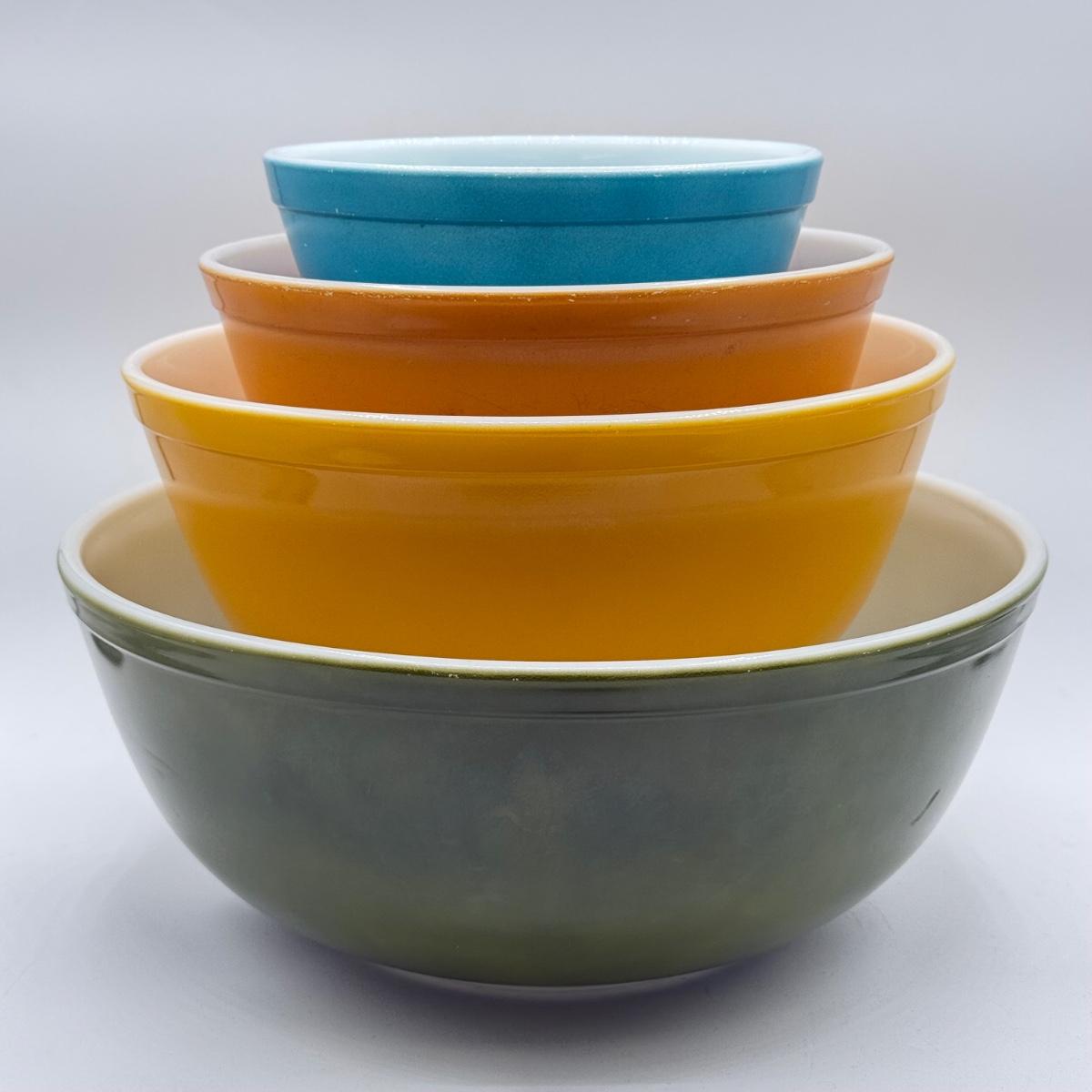 Reverse Primary Color Set of Nesting Pyrex Glass Mixing Bowls in the following colors:
