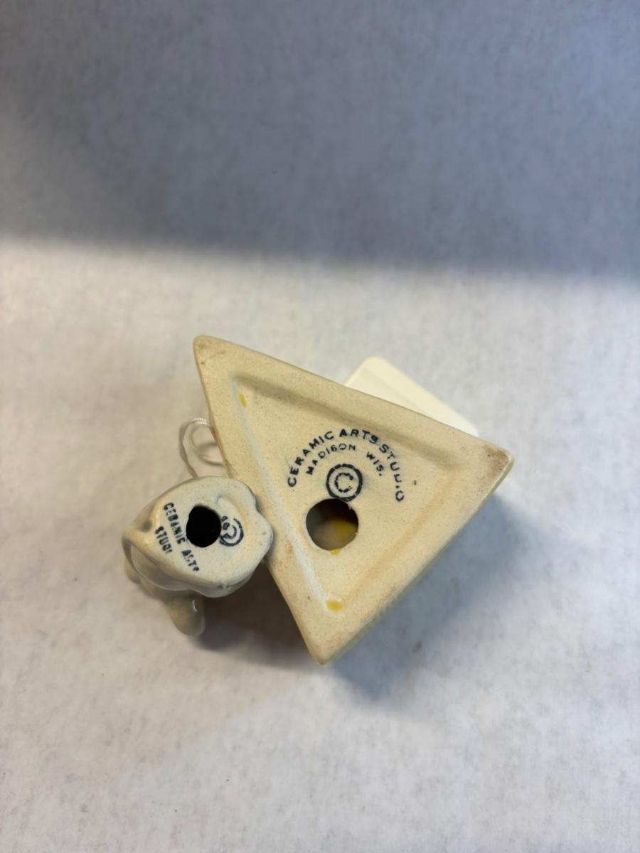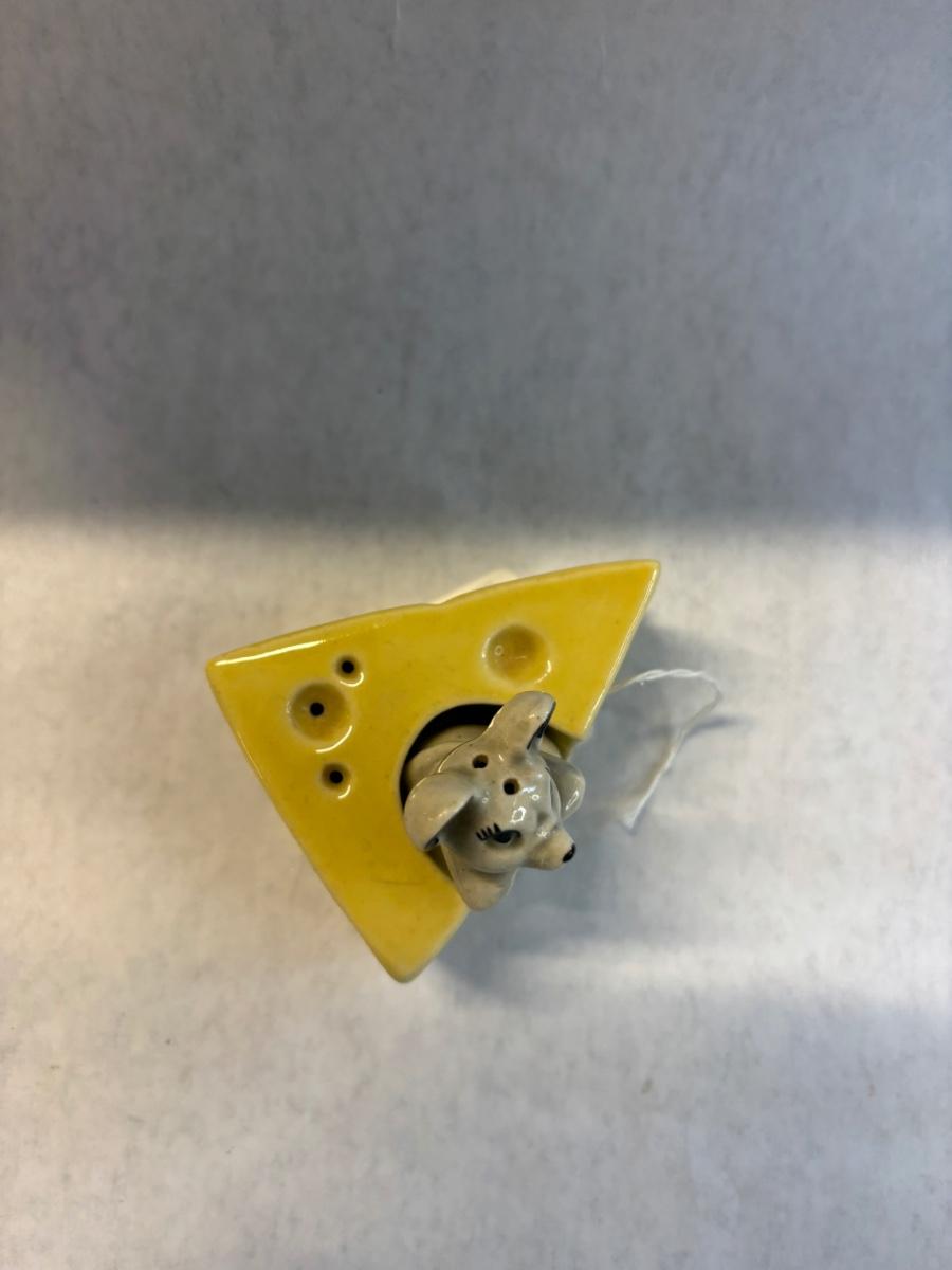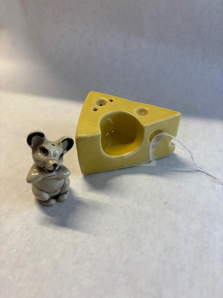 Mouse and cheese salt and pepper shakers. ceramic art studio in Madison.