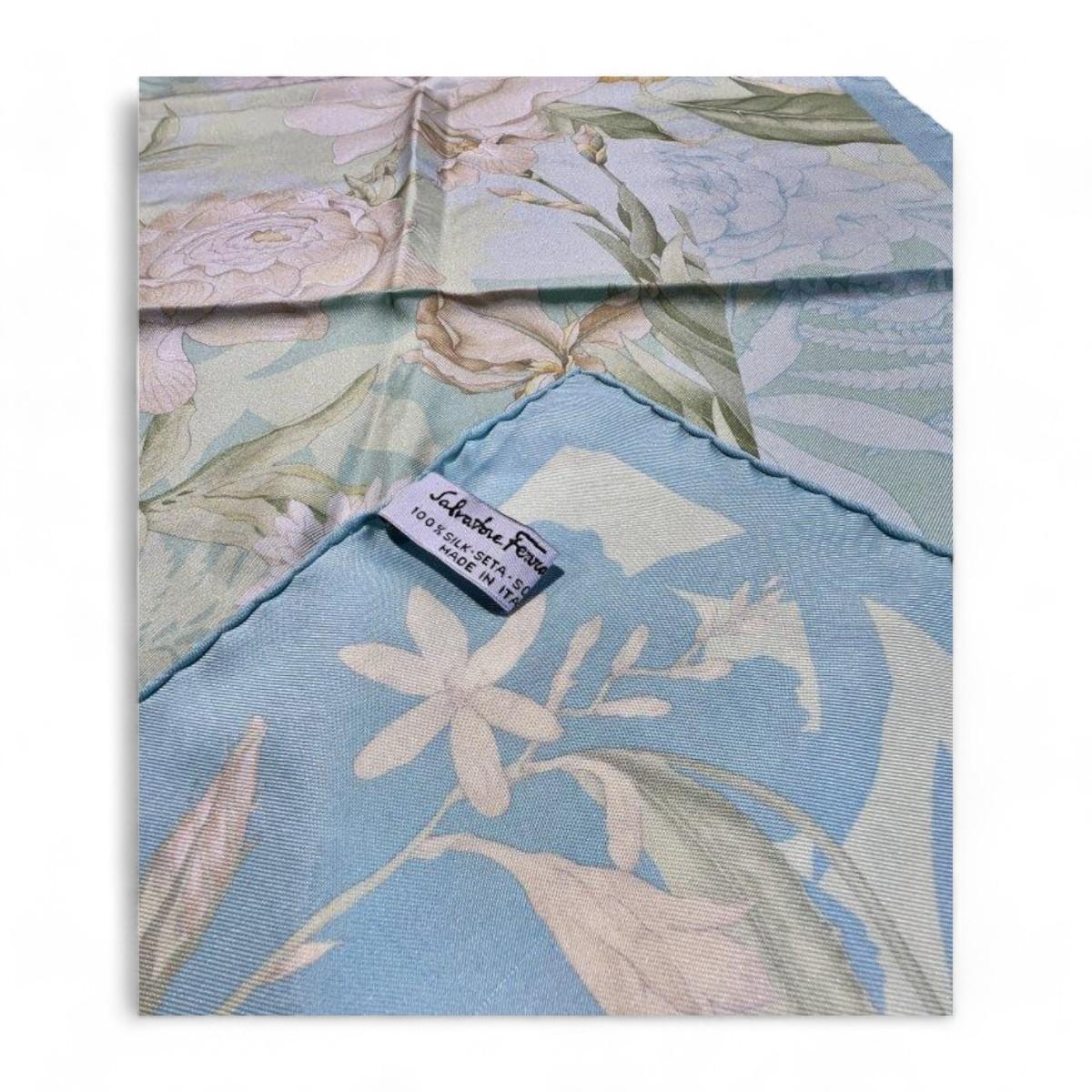 Additional Information: Ideal for those who appreciate refined fashion and top-tier craftsmanship this Ferragamo blue floral scarf is perfect for gifting or as a prized addition to your collection.
