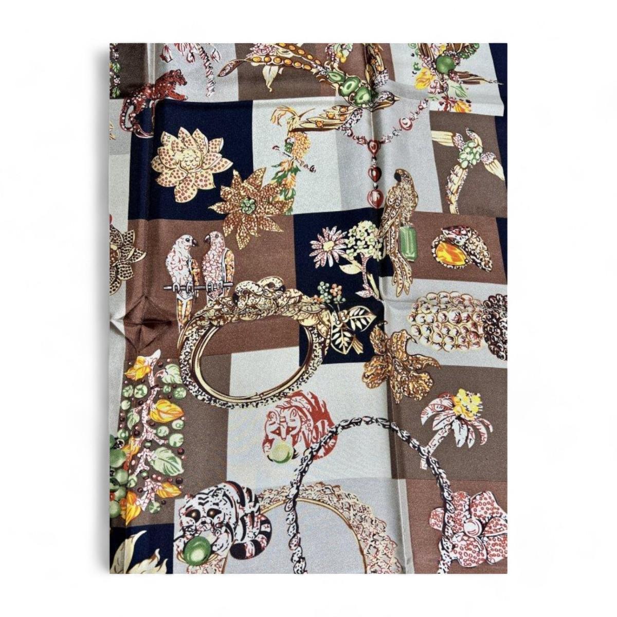 Salvatore Ferragamo Brown Aviary Silk Scarf