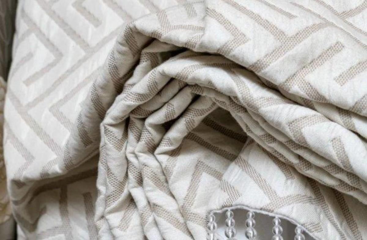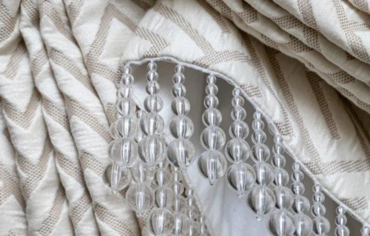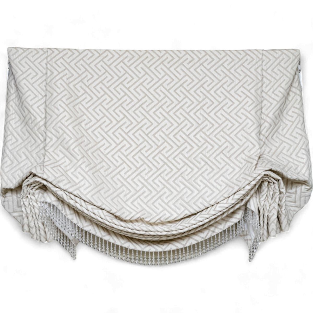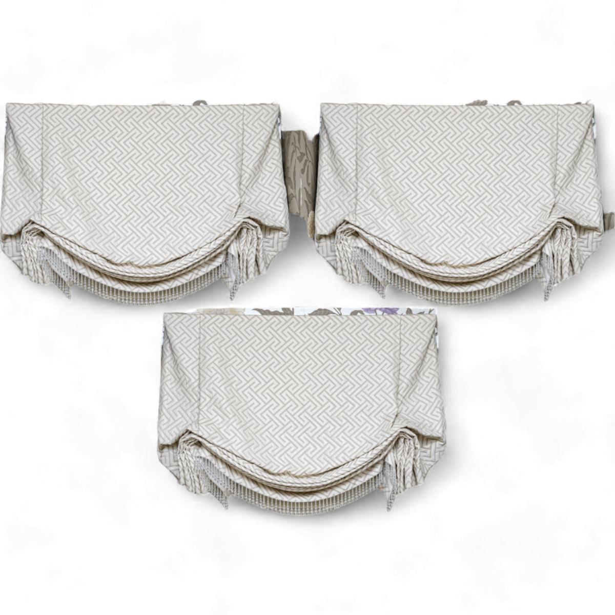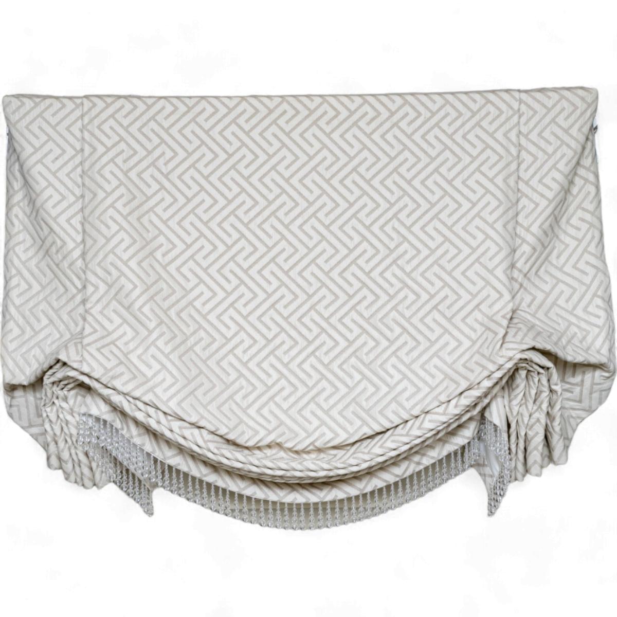 Set of 3 High Quality Custom Window Roman Shades with Beads, Beige and White Geometric Pattern