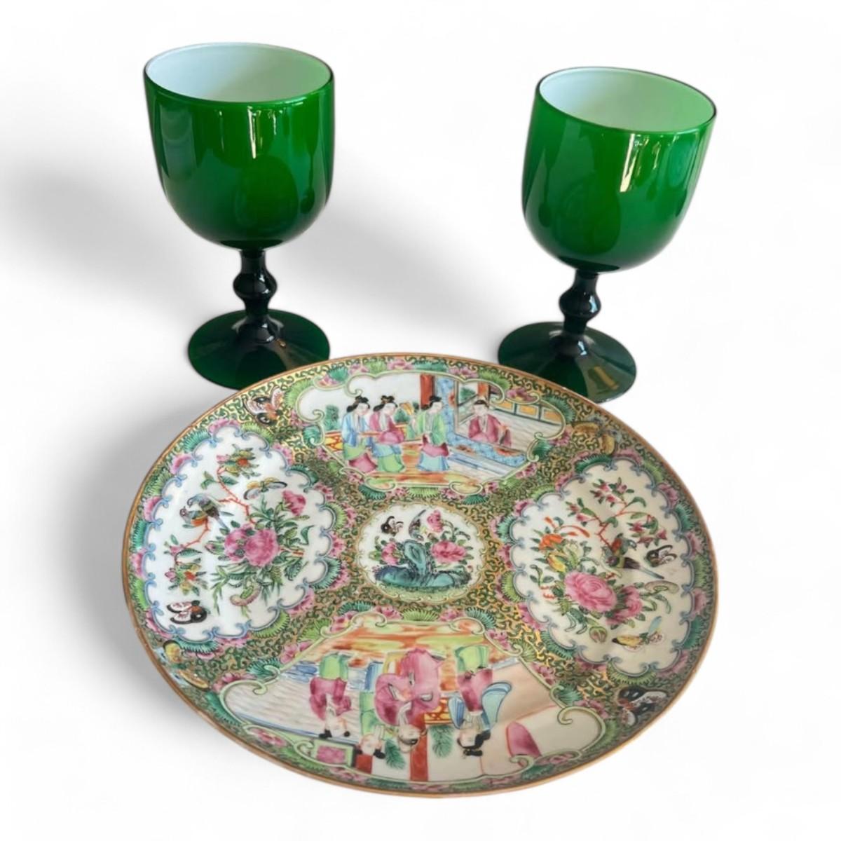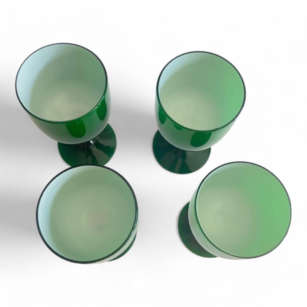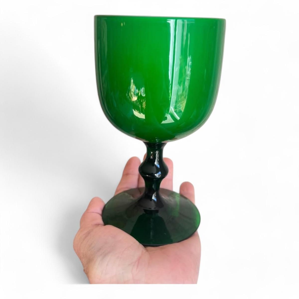Set of 4 Italian Carlo Moretti Green Wine Glass, Murano Glass Green Goblet