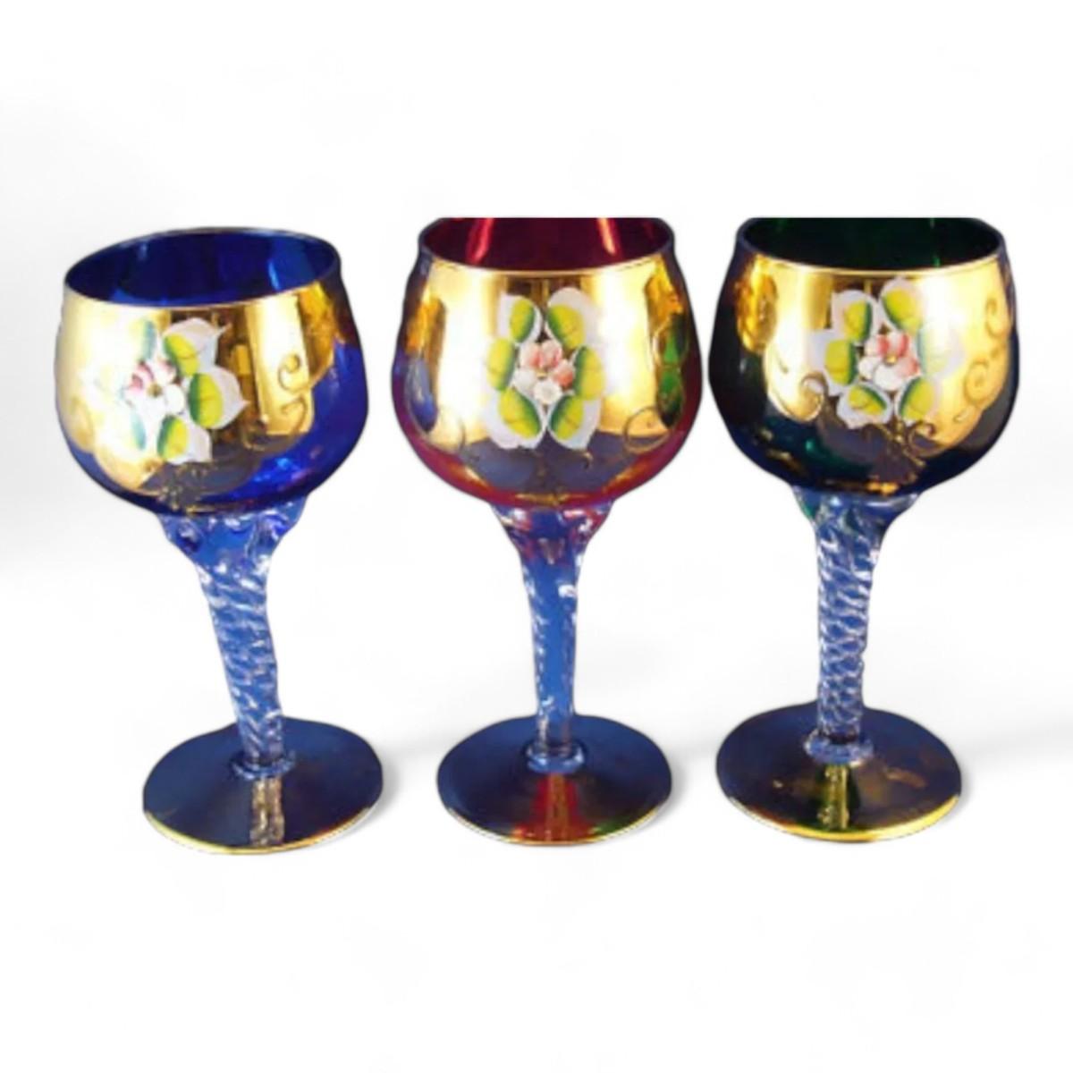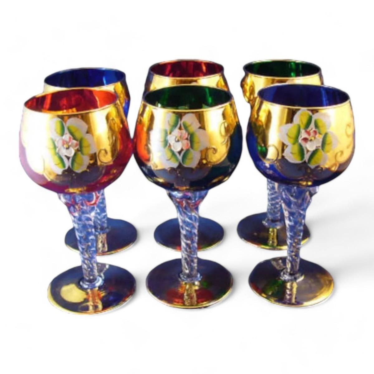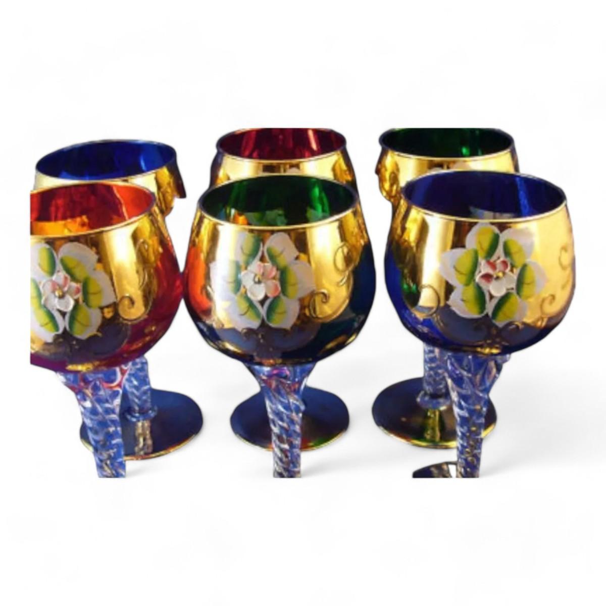 Set Of 6 Bohemian Painted Wine Glasses Red Blue Green Gift Boxed Brand New